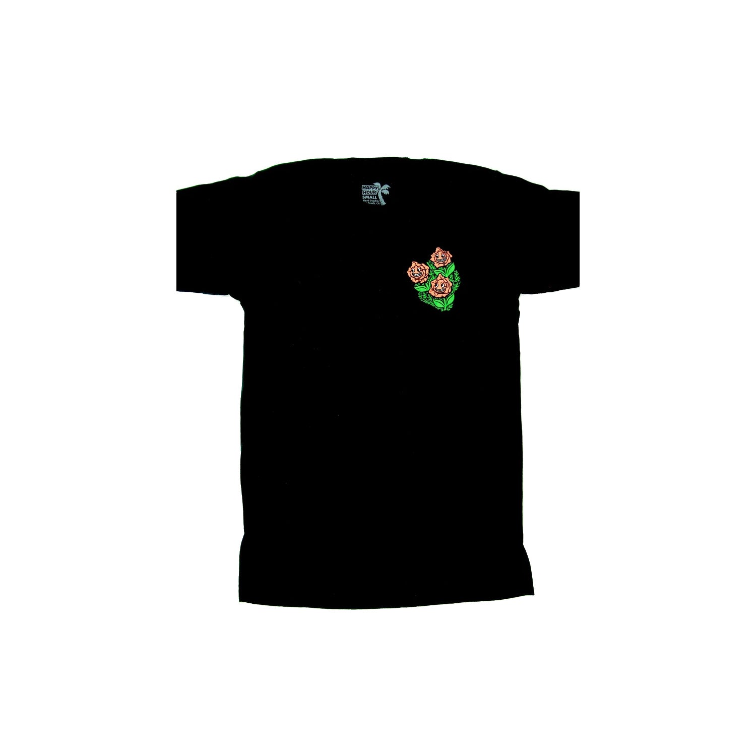 The Black Light Tee from Happy Hour. Ultra relaxed fit 4.5 oz 100% Cotton tee. Black Light Reactive Mushroom graphic spread across the back. Glows under black light. Light not included.
