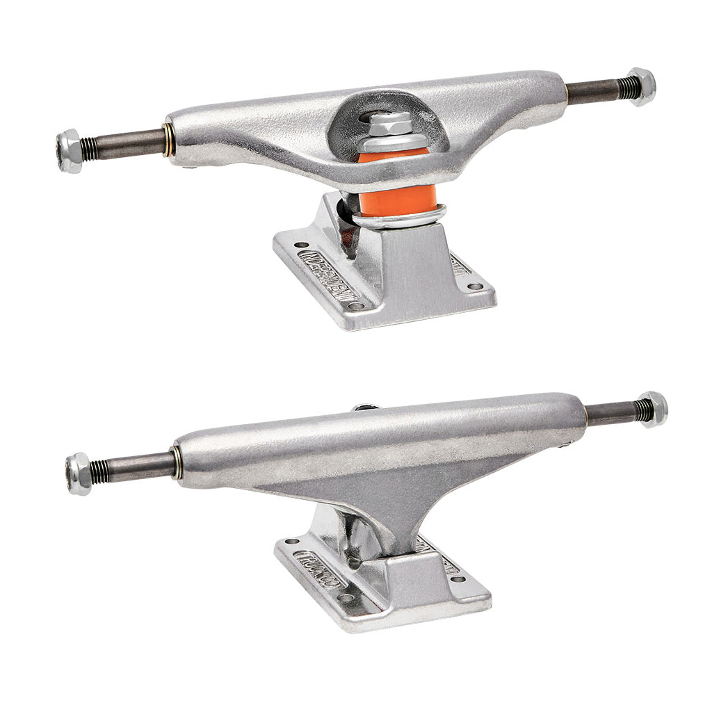 This Independent Trucks Kit feautres Stage 11 Raw Indy trucks, new Triclops Skateboard wheels, Bones Reds Bearings, 1/8" Risers, and 1" Black Hardware. Independent Stage 11 trucks are durable and high performing for all types of skating. Bones Reds bearings are the best and most popular priced bearing on the market. High quality mixed with low cost make these the go-to bearing for skaters worldwide.