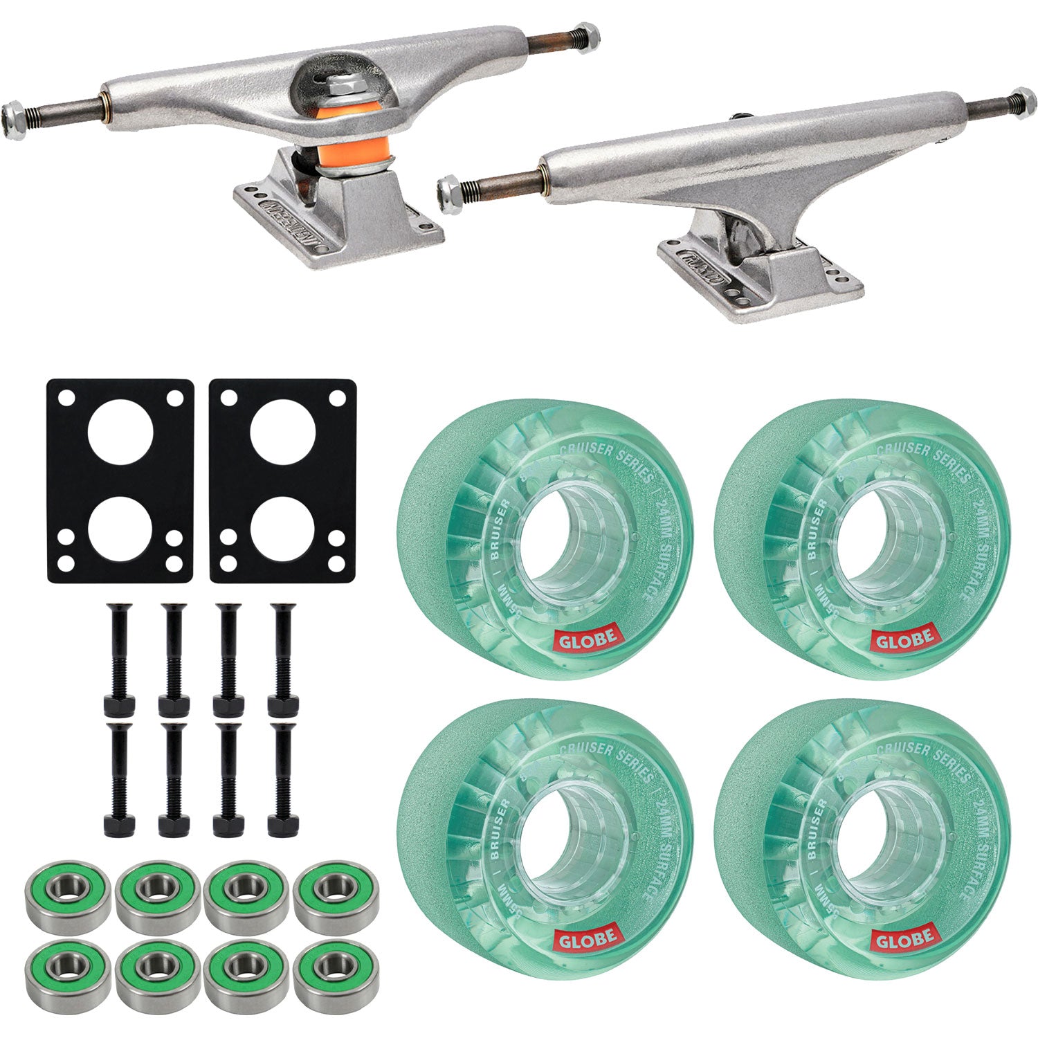 Independent Skateboard Trucks Stage 11 169 (9.125") Polished Silver - Globe Bruiser 55mm 88a Wheels Clear Aqua - Abec 7 Bearings
