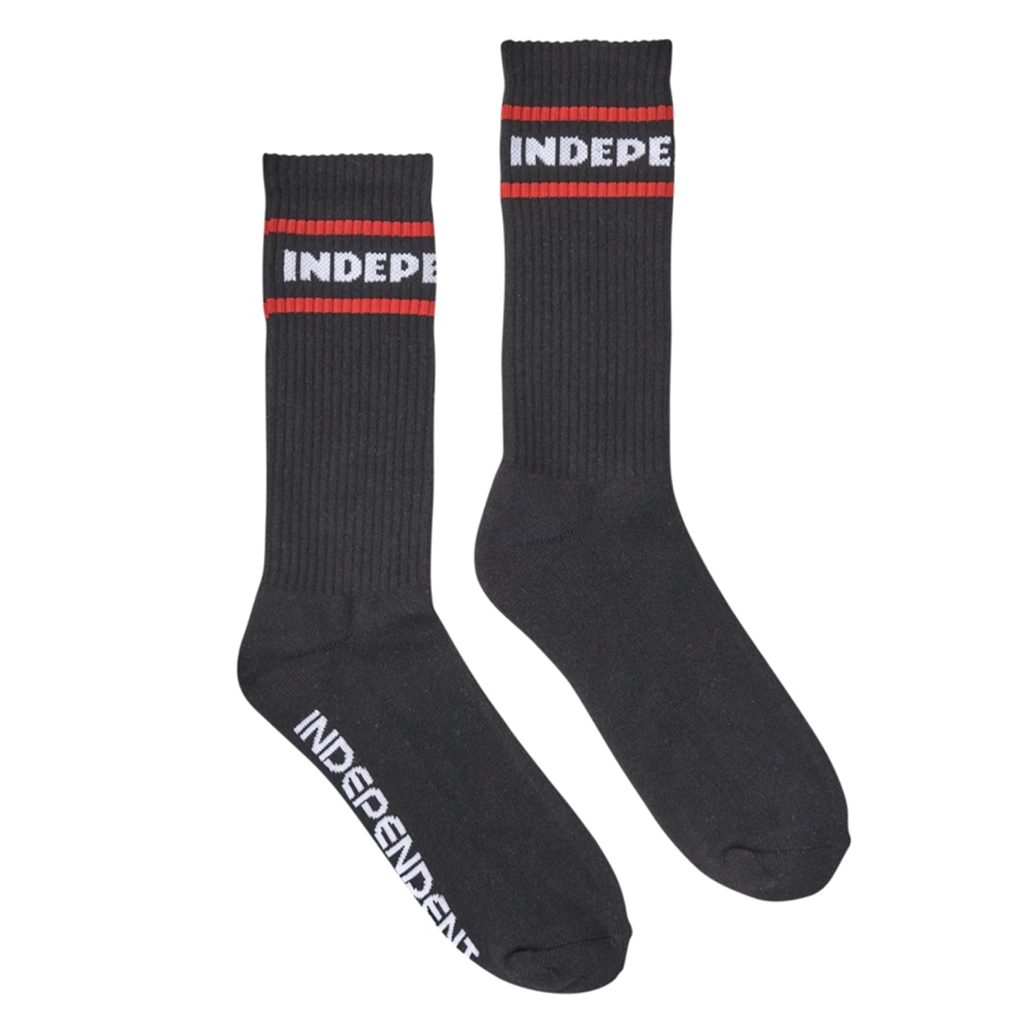 Crew sock with half cushion footbed, knit in Independent ITC Streak logos on top and outside bottom of left and right socks. 1 unit= 1 pair of socks.