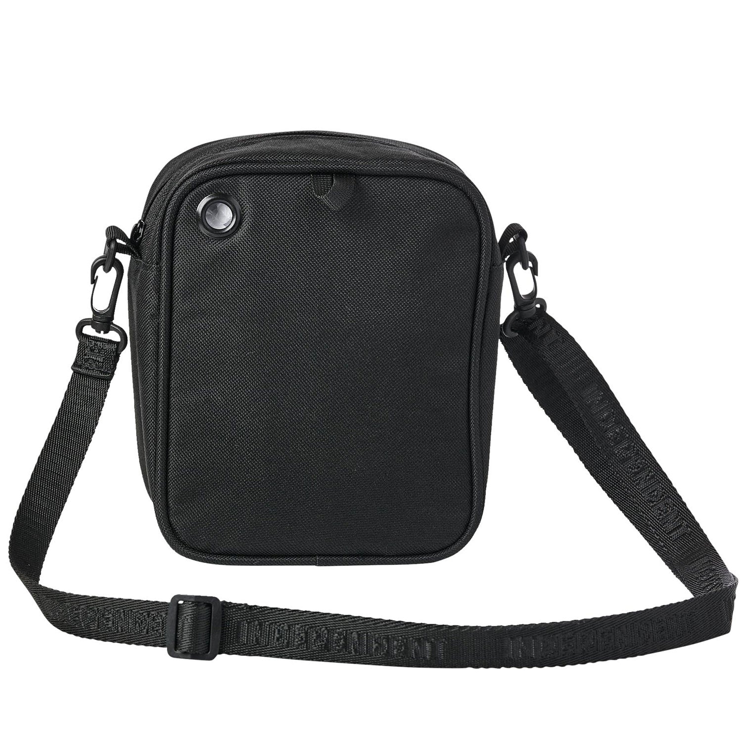 Ride the best and rep the best in the latest apparel and accessories from Independent Trucks. The Independent Bar Logo side bag features zipper closure main compartment with interior mesh pocket, mini carabiner, and metal eyelet for headphones, front zipper pocket, locker loop, adjustable straps with jacquard Independent repeat logo and PVC embossed Bar Logo patch.