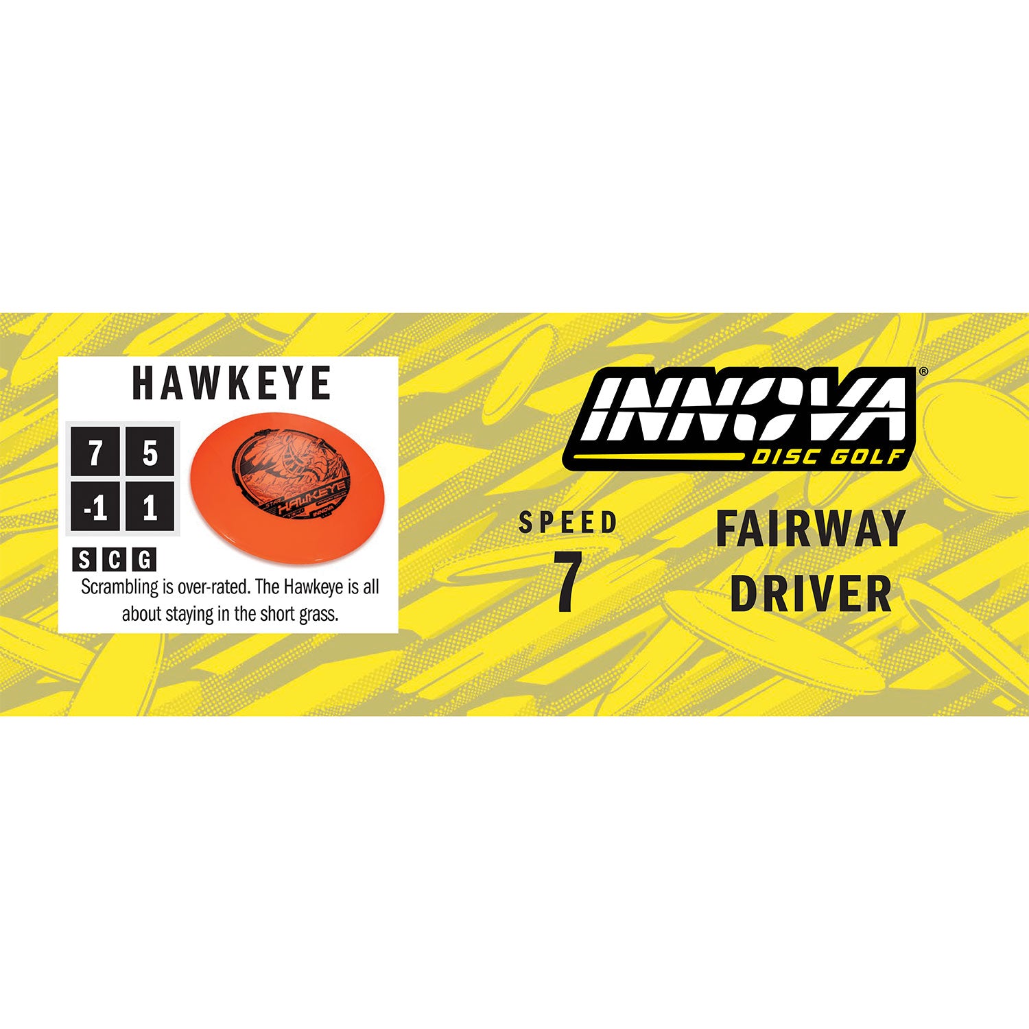 For predictability and accuracy in a fairway driver, grab the Innova Hawkeye. At faster speeds, it flies straight with exceptional glide. For players with less power, it has a consistent, mellow fade. All of this adds up to accuracy, the hallmark of the Hawkeye.