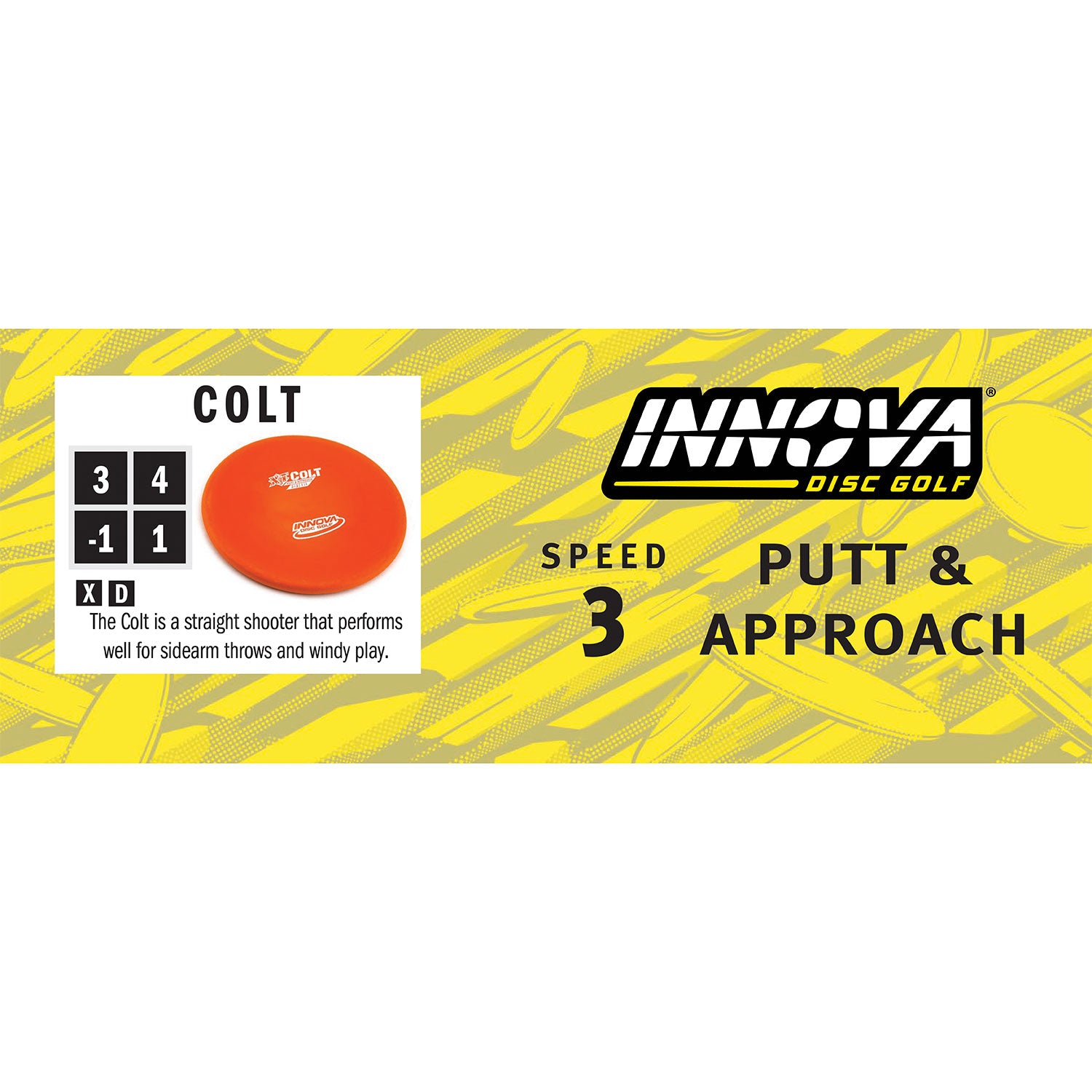 The Colt is a low profile putt and approach disc that can handle extra torque and windy conditions. The Star line is created with a special blend of grippy, resilient polymers. Star plastic offers the same outstanding durability of our regular Champion plastic, plus improved grip like our Pro plastic. Star discs have the same flight characteristics as Champion discs, but are slightly less firm. High performance, longevity, and superior grip make Innova Star line discs a great choice for your game.