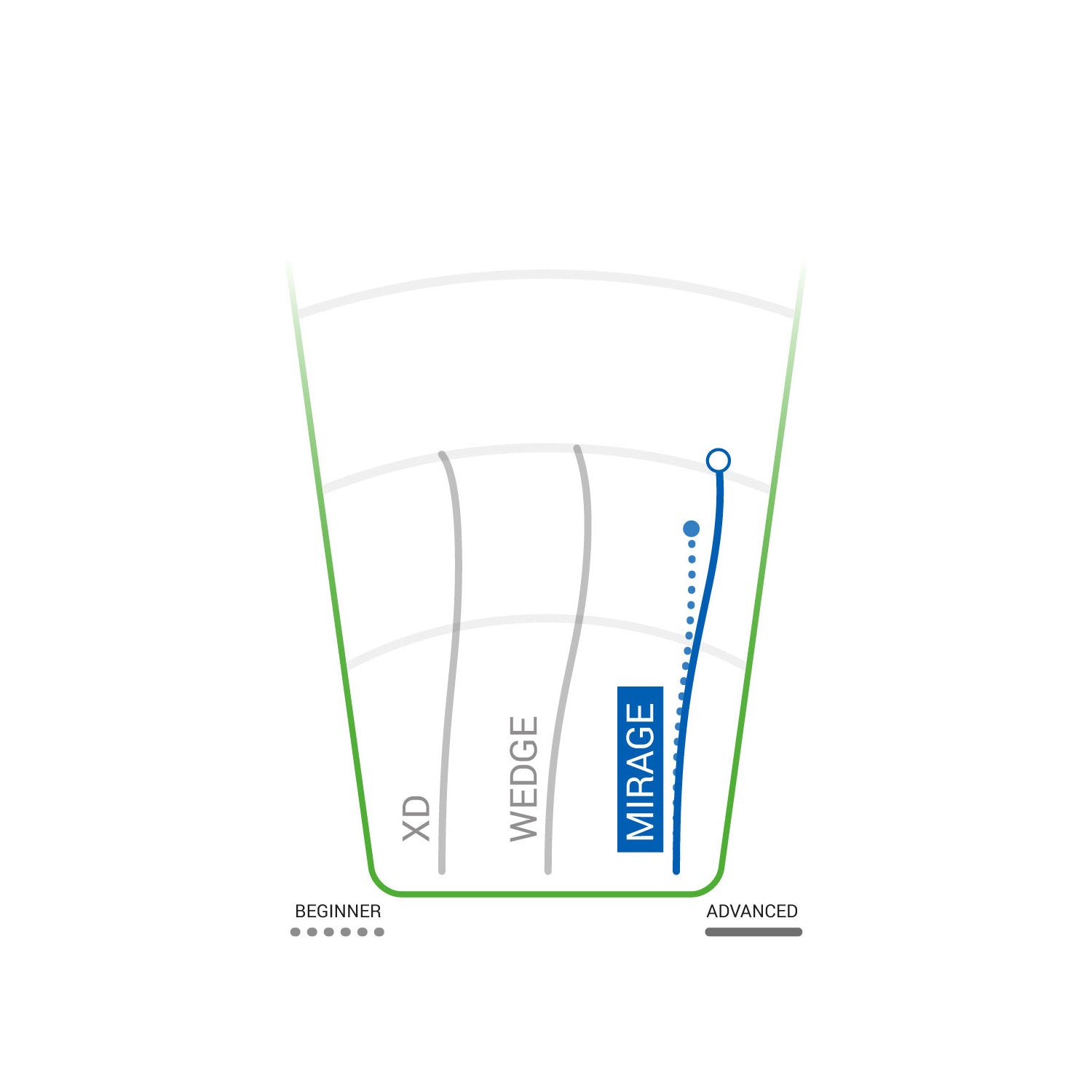 Seeing is believing. The Mirage has lots of glide with a smooth gentle landing. The DX line offers the widest selection of models and weights. These discs are affordably priced and provide an excellent grip in a variety of weather situations. DX discs wear in with usage and over time will eventually take on new and varied flight characteristics. Many top pros carry several DX discs of their favorite models to provide different flight patterns for different situations.