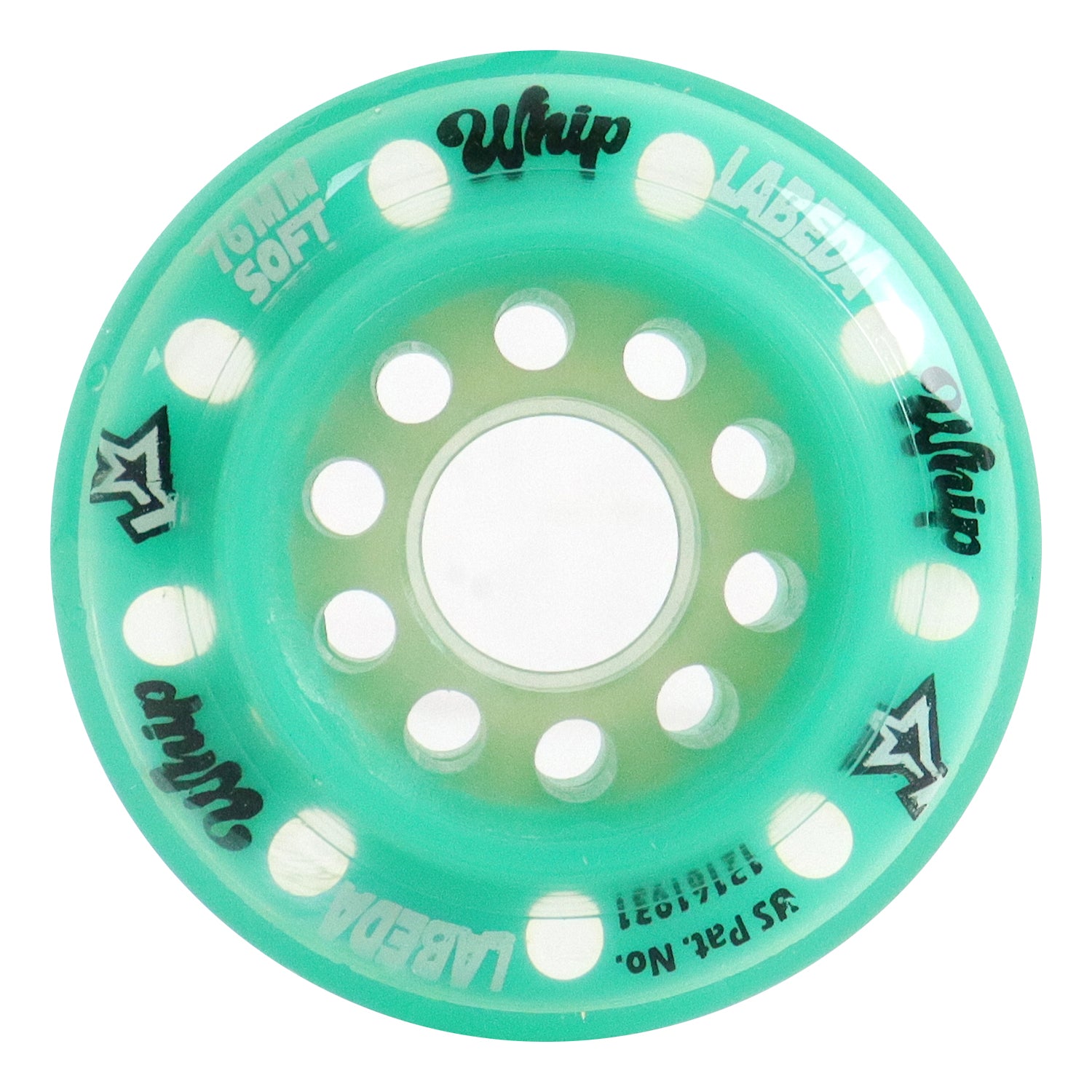The teal Labeda Whip is the first real true innovation in wheels since the inception of dual and triple pour wheels. In testing and R&D for over 8 years. It's unique Patent Pending'” EVO core creates a snap back effect that launches you out of every cut and step on the rink. Your wheels have never instantly reacted to your every move, until now.