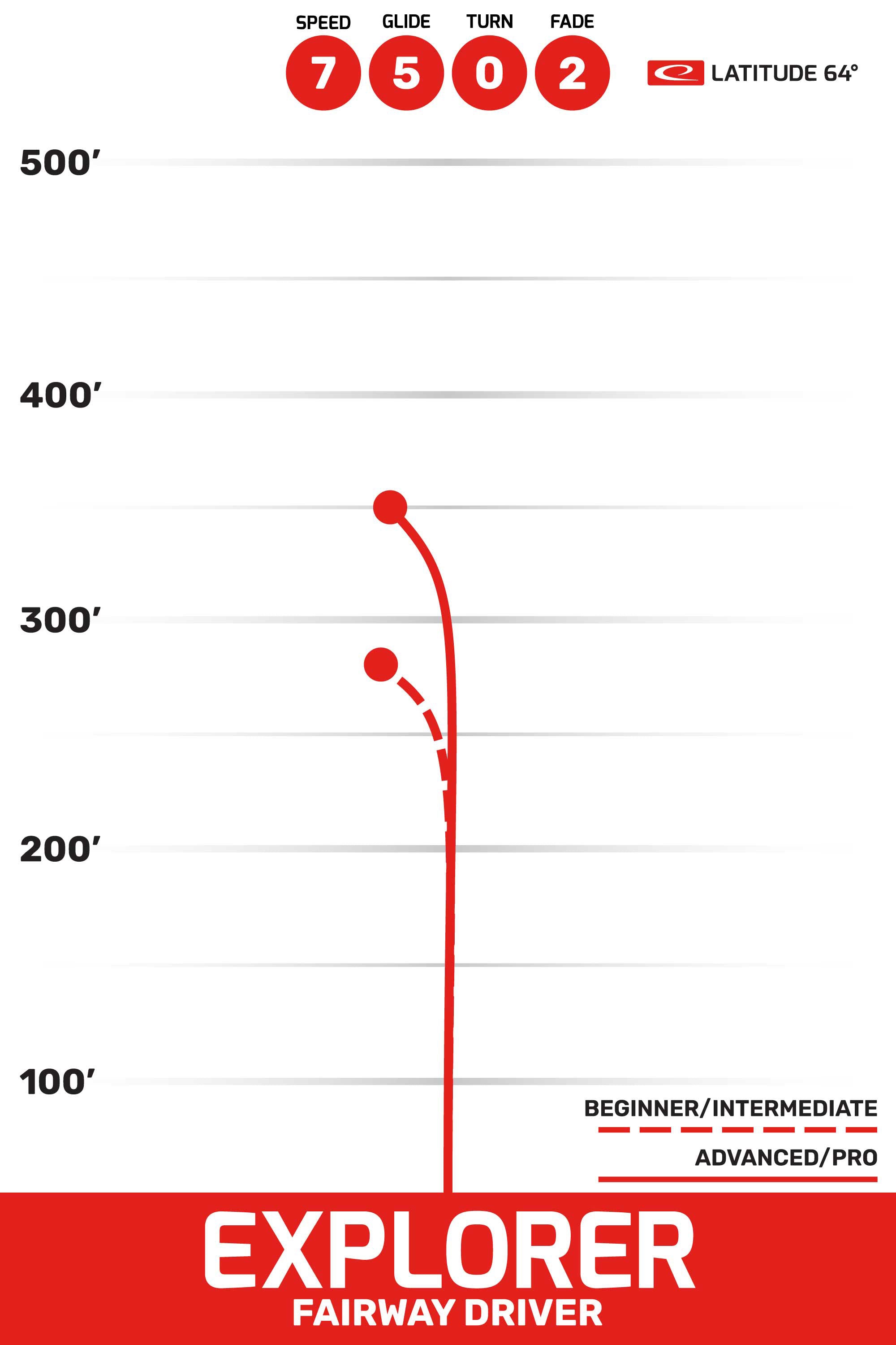 Version 2 of 2021 Team Series discs have arrived and they do not disappoint. With a clean stamp and bright colors, these Gold-X discs look and feel great. Why was the Explorer voted the 2018 Disc of the Year? Straight flight path and controlled glide, that's what the Explorer brings. Designed to be the workhorse for all kinds of accurate fairway drives. This stable and versatile fairway driver is smooth out of the hand and has a clean stable flight. Speed: 7 Glide: 5 Turn: 0 Fade: 2.