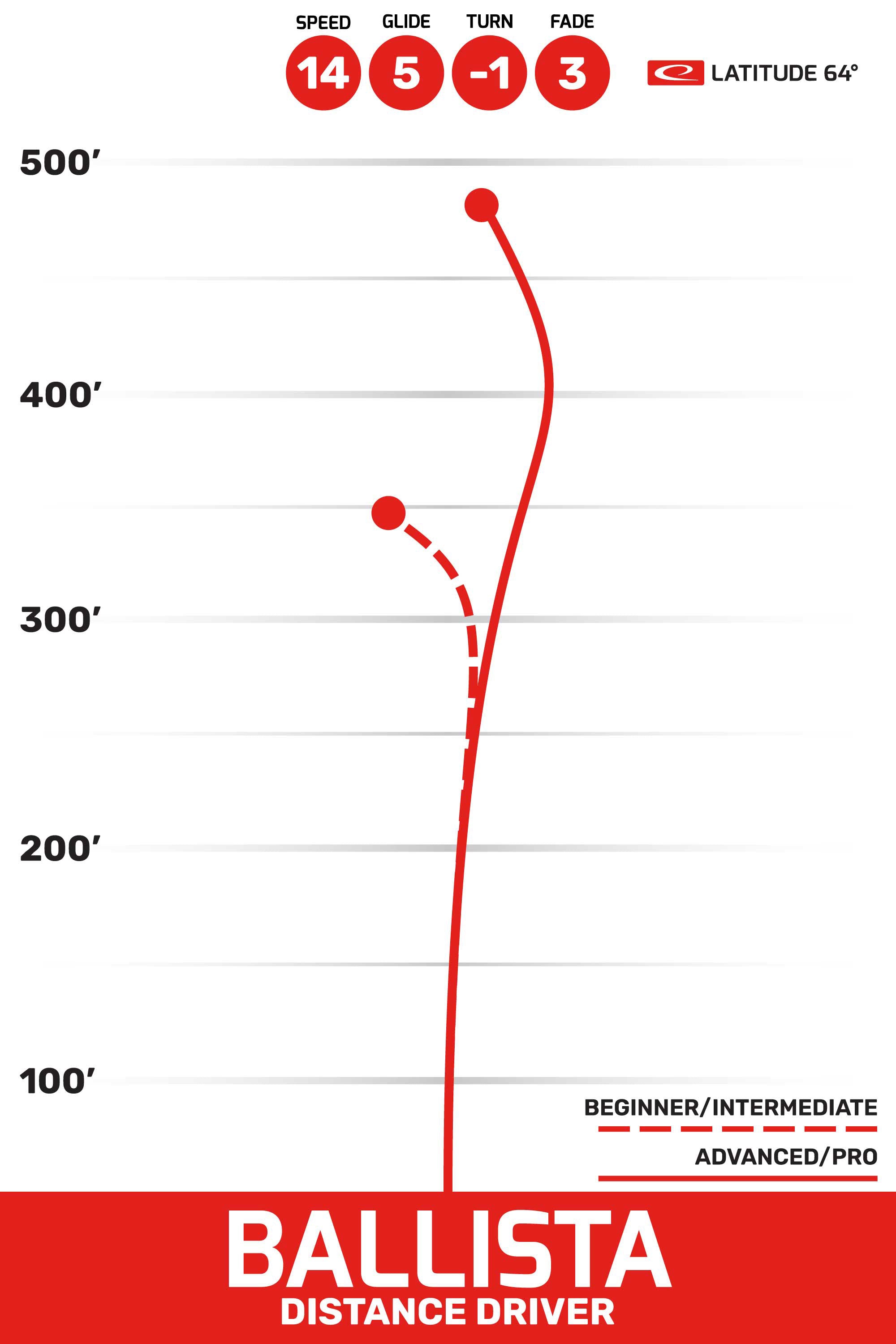 Tired of choosing between speed and accuracy? With the Ballista you can get the best of two worlds. One of the fastest discs in the world combined with a dependable flight path makes the Ballista a must-have in your bag. It will be overstable for beginners and slightly understable for experienced players.