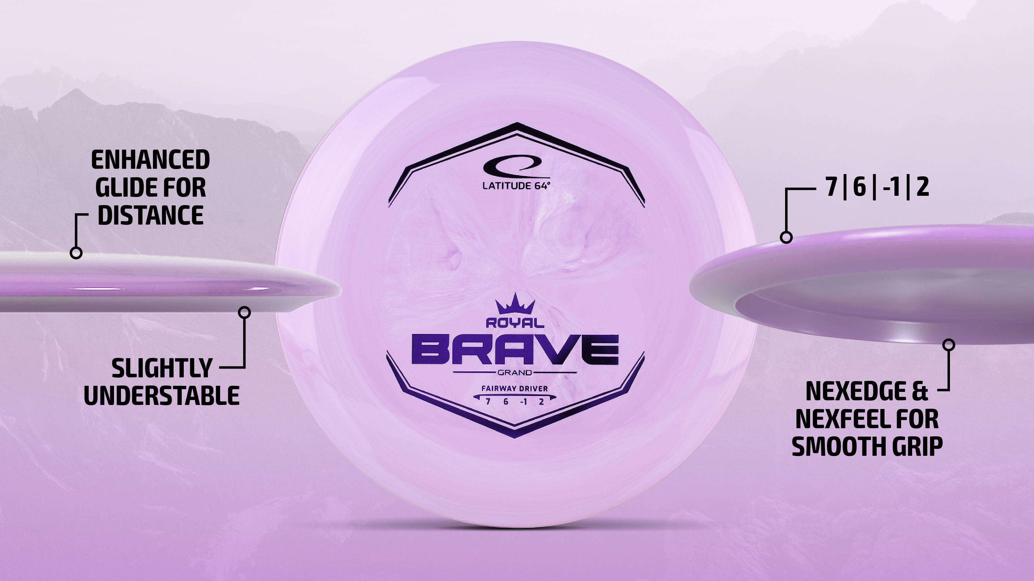 Brave is a fairway driver that will surprise you with its sneaky distance. Built upon the design of our acclaimed Explorer, Brave features a slightly understable flight path and enhanced glide. Whether you're an amateur seeking distance, or a pro player executing controlled anhyzer shots, your friends will think you are Brave with your game.