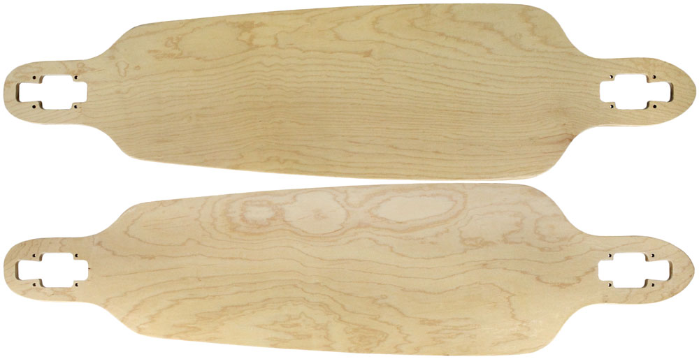 This is probably the most popular method of lowering the center of gravity on a longboard. The Drop Through shapes have high stability while retaining much of the responsiveness of a topmount. These boards have incredible traction, speed, and slide ability. Board measures 10" Wide x 38.75" This deck is comprised of 9 plys of Canadian Maple.