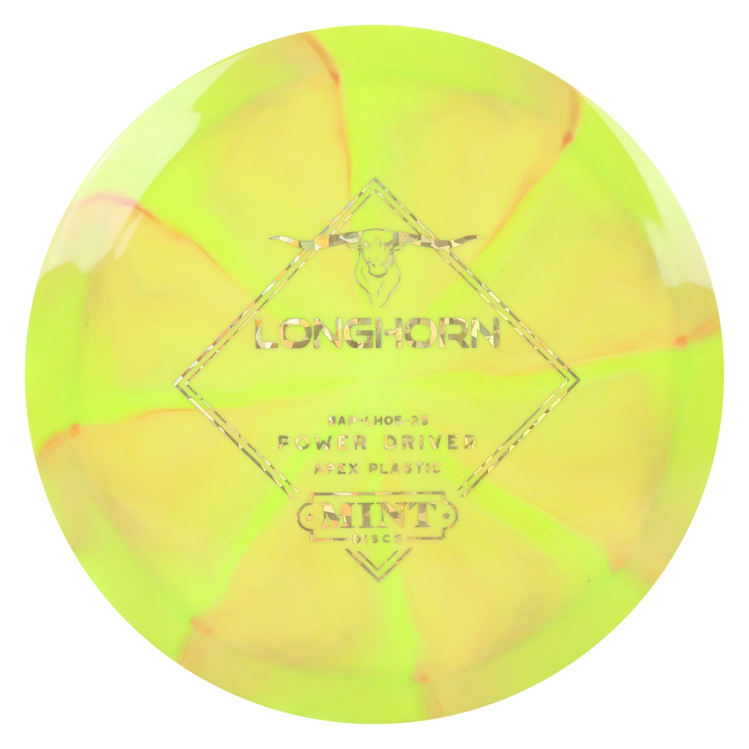 Mint Disc Golf Apex Swirl Longhorn Distance Driver 11/4/-1/2.5 DayGlo Lime/Holo Shatter 174 grams