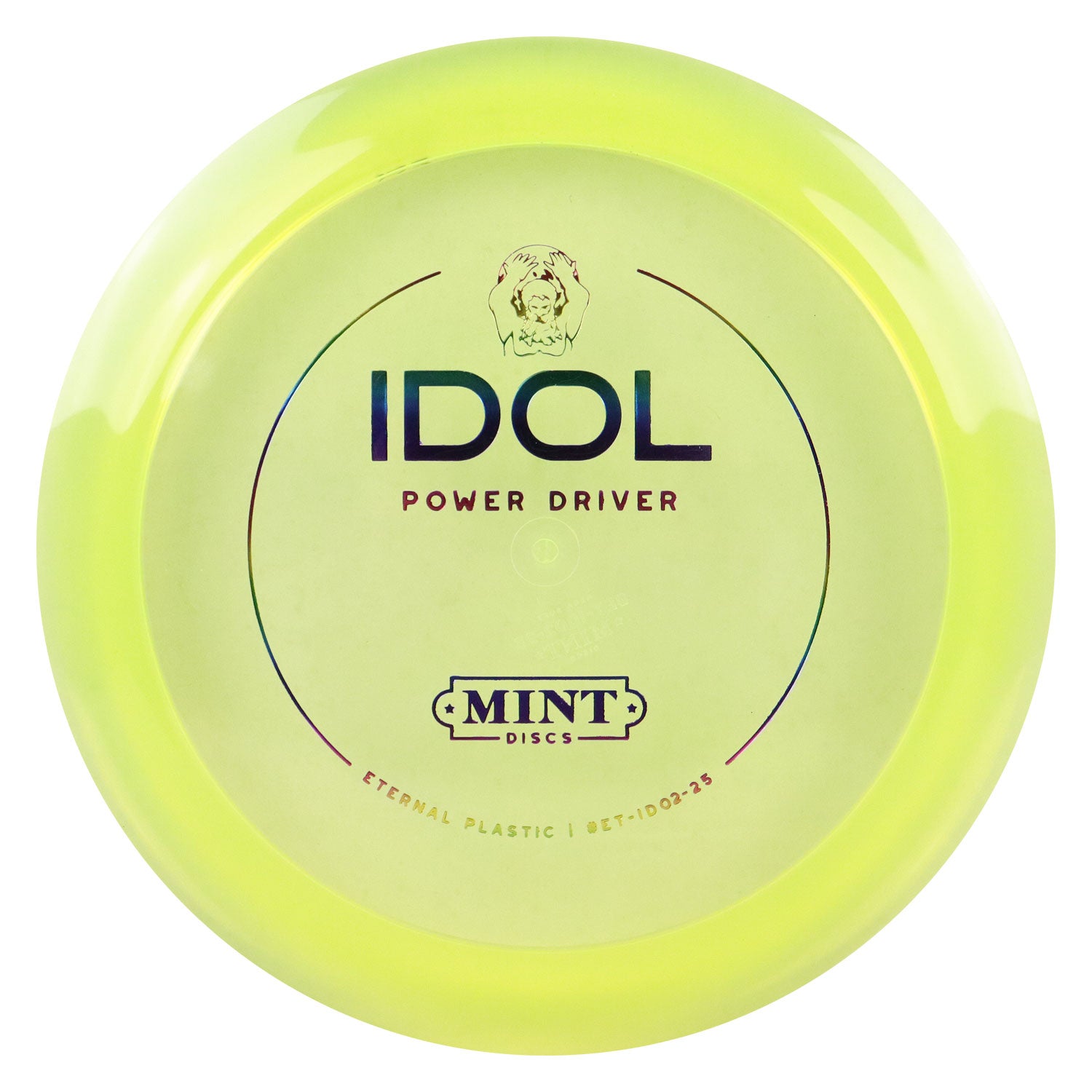 The Mint Discs Idol is manufactured by Prodigy Disc. The Idol is a high-speed distance driver built for raw power and long, controlled flights. This high speed driver will have a bit more turn than the Goat, with a nice reliable fade at the end.