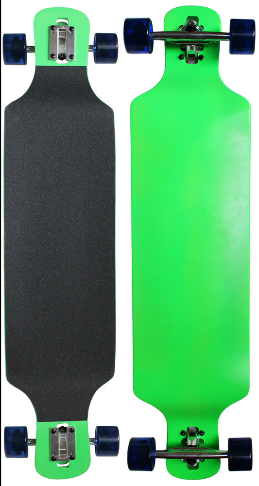 This is a perfect 9.75" x 41.25" Canadian Maple Longboard Deck. The angled section leading to the truck mounting can be used as a comfortable foot stopper. This is a freeride style board which is great for sliding and other tricks. Deck Specs: Width: 9.75" Length: 41.25" Wheelbase: 31.8". Completed with 180mm Heavy Duty Aluminum Reverse Kingpin Trucks, 76mm x 53mm 81a Wheels (Color may Vary), Abec 7 Bearings, Black Griptape.