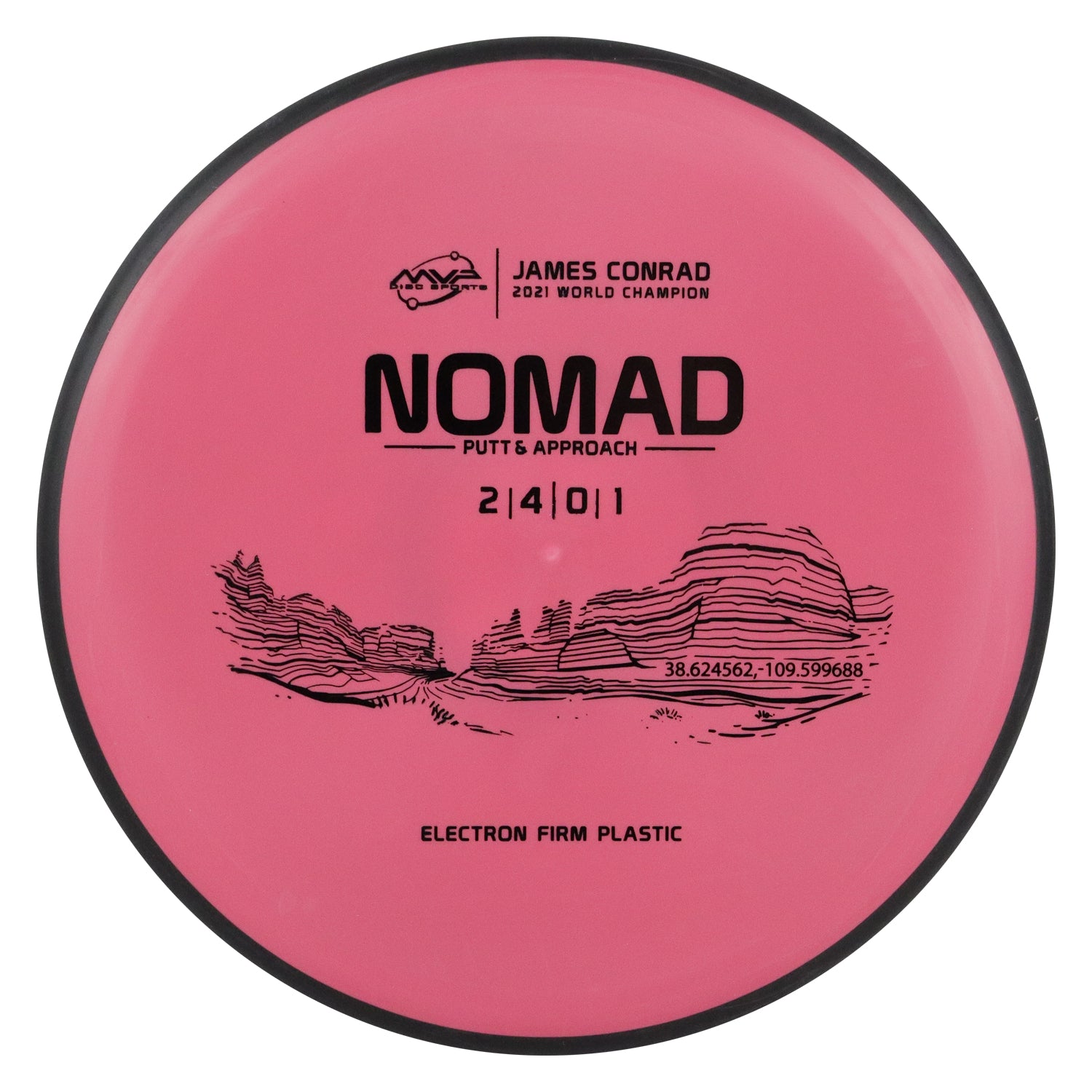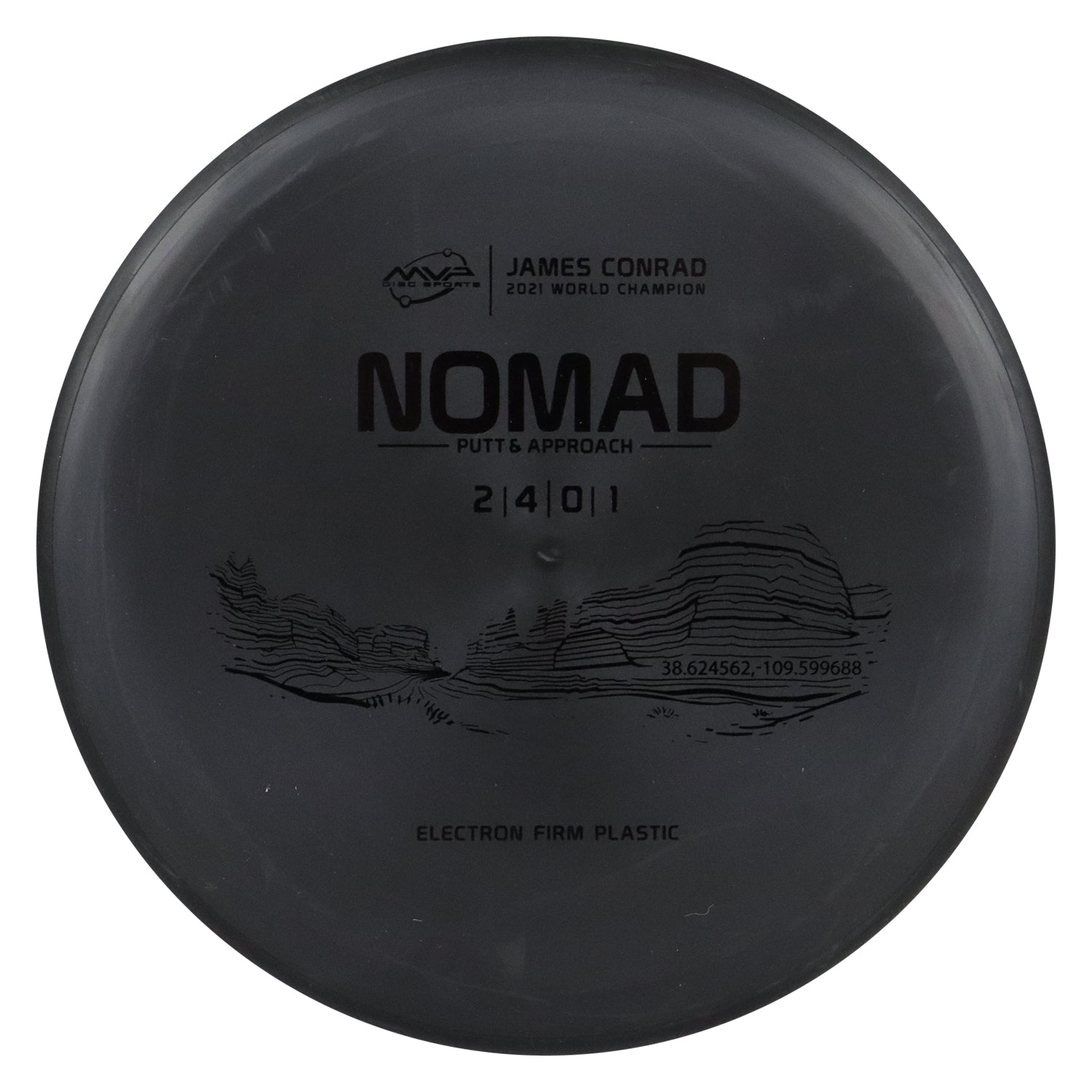 Designed by the World Champion himself - the Nomad has everything James Conrad desires in a putter. From the depth and shoulder height, all the way down to the size of the small bead - the Electron Nomad is James’ vision of an ideal putter. One of the fun challenges of designing the James Conrad Line was figuring out just what that concept meant to James and MVP. After sitting down with James and talking about his passions, it became clear that the concept of travel and exploration was going to be the bedrock of the James Conrad Line. With that in mind, James wanted to use his Line to showcase some of his favorite places and experiences on Earth. As luck would have it, months before he would go on to win the World Championships in Utah, Arches National Park was chosen as our Nomad concept —James Conrad definitely has some magic to him. From there, we had to formulate how to blend the unique themes of the James Conrad Line with those of the MVP brand itself. Mixing science with nature, much like Axiom’s representation of art, was definitely something we were looking forward to, and Art Director Mike Inscho was more than up to the task. For the Electron Nomad specifically, Mike’s inspiration was to represent Arches with audio-like waveforms — creating a topographical waveform of a trailhead that is close to James’ heart. With just enough nods to MVP themes so as to enhance, not overwhelm, the core concepts of the James Conrad Line, the Nomad truly represents the partnership between James and MVP. The results speak for themselves, and we can’t wait to see what Mike and James have in store for us next.