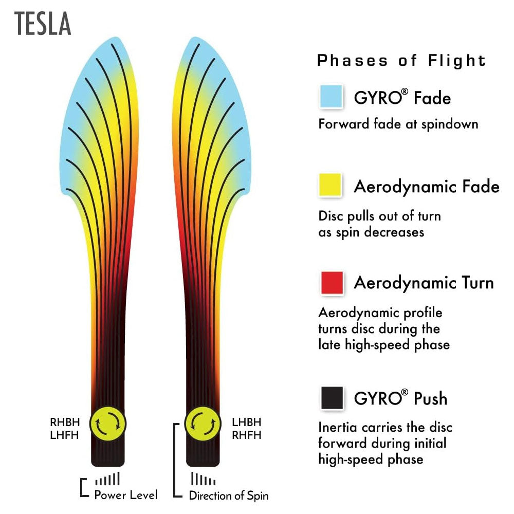 The Tesla is a stable-overstable distance driver. The Tesla’s responsive design balances a subtle turn and reliable fade, while a pronounced glide and forward finish gain extra distance. The Tesla extends high power or headwind lines and has plenty of bite to fade back reliably and reduce lateral drift. The Tesla can be considered the big brother to our acclaimed Volt fairway driver. Choose the Tesla for long-range pinpoint accuracy. MVP features the flagship material, Neutron. An opaque and grippy blend, Neutron is available in a variety of vibrant colors. MVP Neutron features all black GYRO rims.