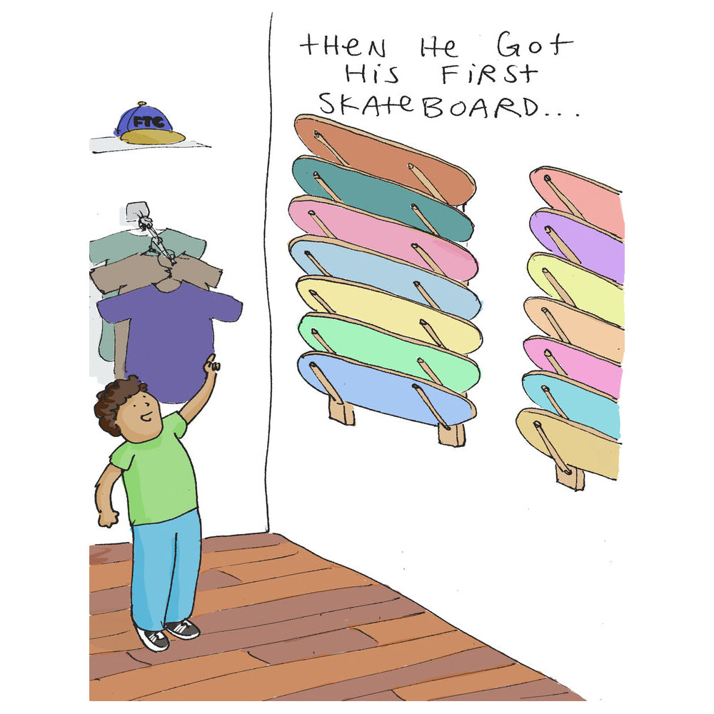 My First Skateboard is a children's tale of how skateboarding can save the world. Karl Watson has devoted his life to this world by becoming a professional skateboarder and spreading his unique positive nature and genuine love of all. Not to mention his legendary style on the board. Karl devotes himself to inspire youth to be positive, to see all people as one, and to work hard toward goals to achieve success. Illustrator, Henry Jones, was the perfect choice to create the vibrant images in this book. Henry is a renowned artist within the skateboarding community and grew up skating himself. His distinctive cartoon style highlights skate culture, captures amazing tricks, and is often filled with humor. My First Skateboard will hopefully inspire new young, shredders to get out there, get involved, and be active. The skateboarding community is waiting to embrace them.
