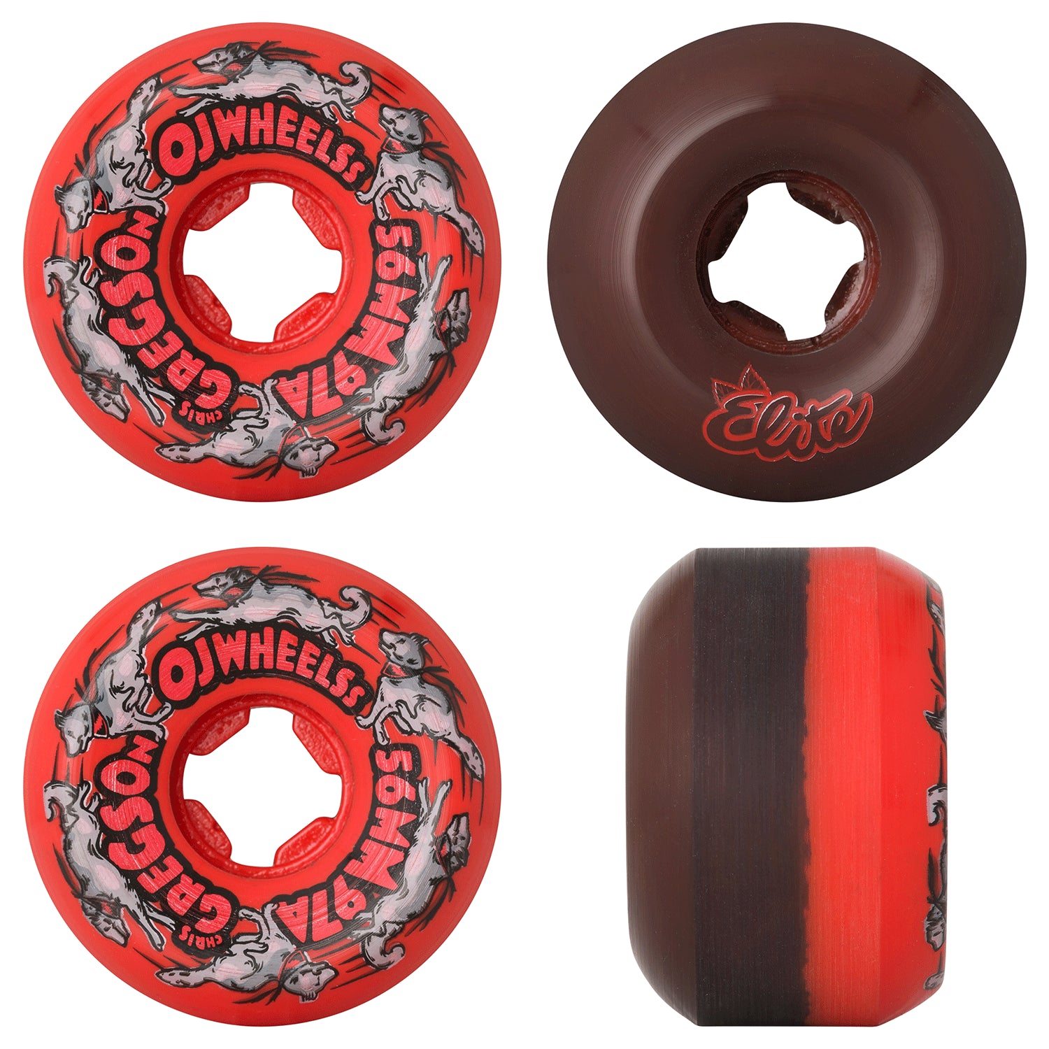 OJ Wheels Skateboard Wheels 56mm Gregson Masher II 50/50 Split Elite Red Black