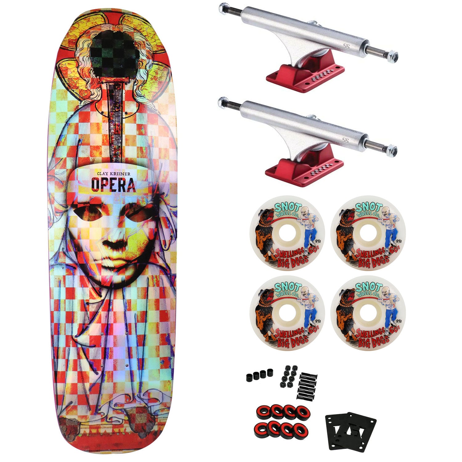 Includes hand selected components to make a premium complete that even the pros would be proud of. Top tier parts from leaders in the industry. Includes a Opera Deck, Ace Trucks, Snot Wheels, Abec 5 Bearings, Black Diamond Griptape, 1" Hardware and Risers.