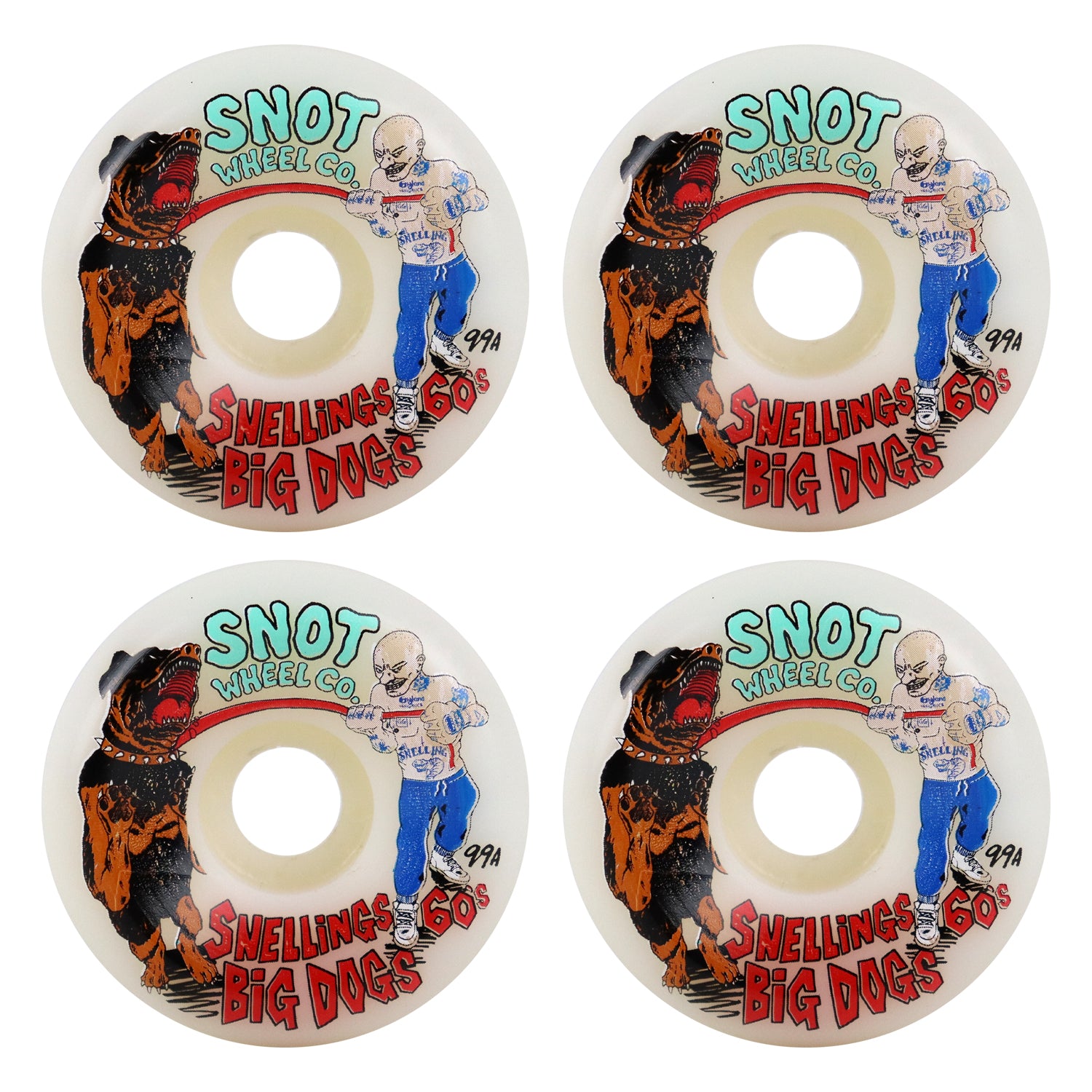 WHEELS: Conical shape wheels from Snot Wheel Co. Conicals feature a squarer wheel shape and wider profile for more running surface. These wheels measure 60mm in diameter and 99A in hardness.