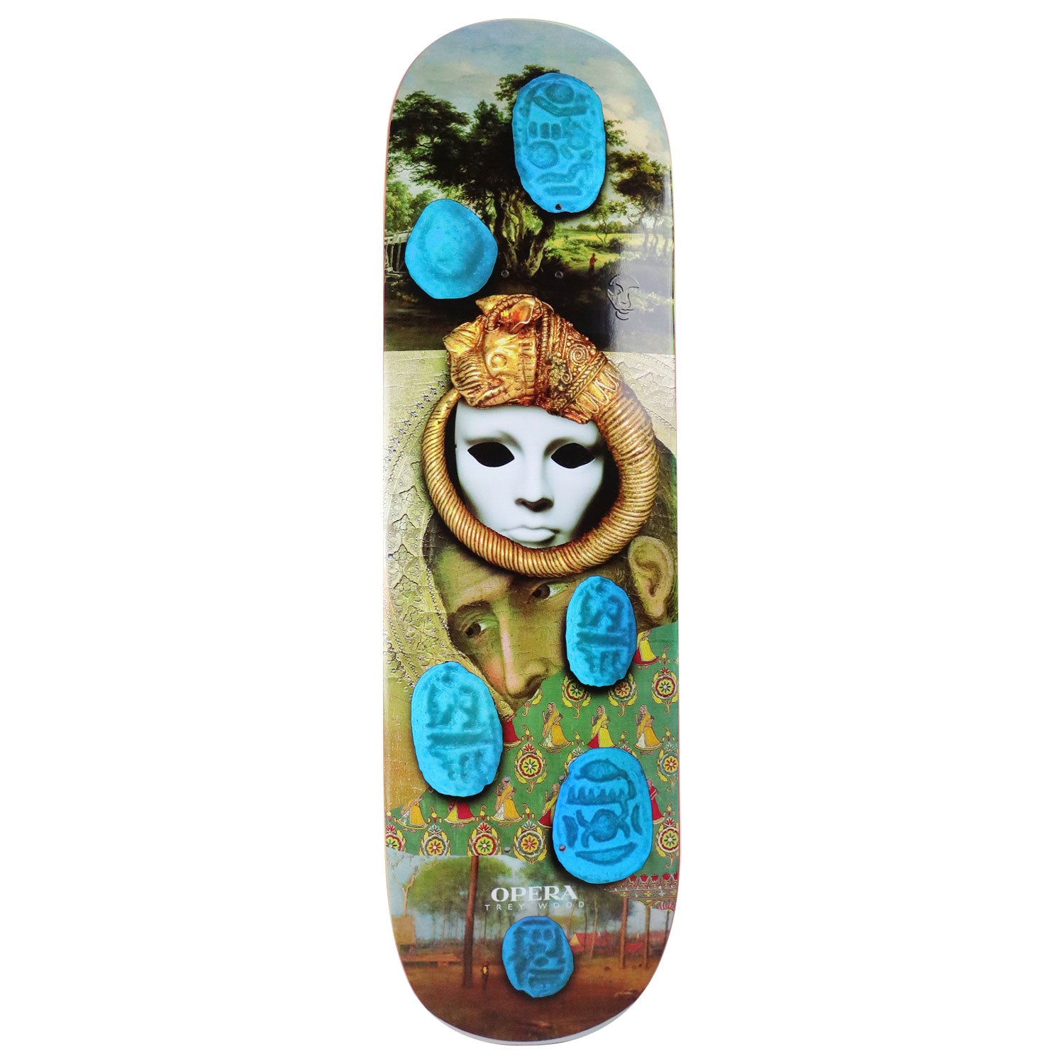 DECK: This is a rider stock deck from Opera, originally produced for use by Nick Papa. Companies want their riders skating specific graphics for marketing purposes and riders request boards sized specifically for their preference. The result is that companies sometimes produce boards specifically for their riders that otherwise are not found out in the wild. Nick Papa rides a deck that measures 9.0" x 33" with a 15" wheelbase.