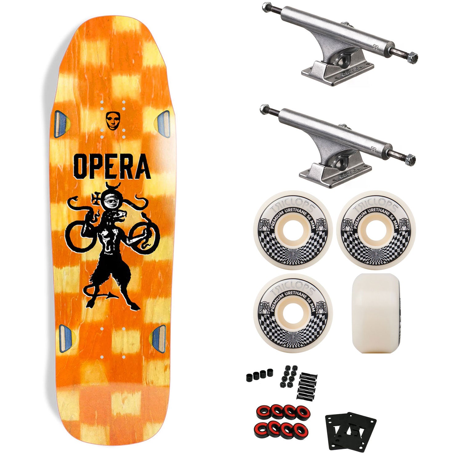 Includes hand selected components to make a premium complete that even the pros would be proud of. Top tier parts from leaders in the industry. Includes a Opera Deck, Ace Trucks, Triclops Wheels, Abec 5 Bearings, Black Diamond Griptape, 1" Hardware and Risers.