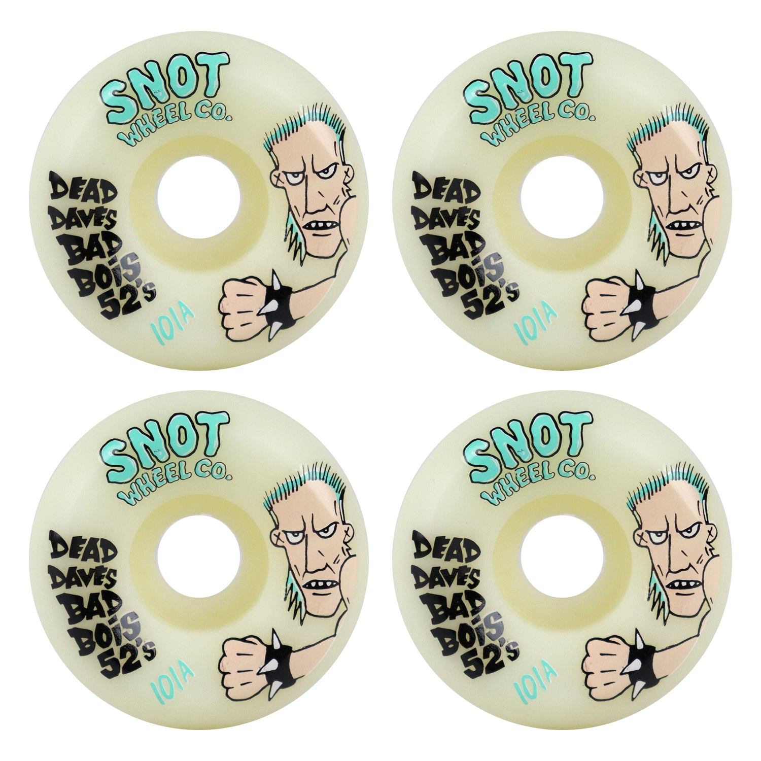 WHEELS: Conical shape wheels from Snot Wheel Co. Conicals feature a squarer wheel shape and wider profile for more running surface. These wheels measure 52mm in diameter and 101A in hardness.