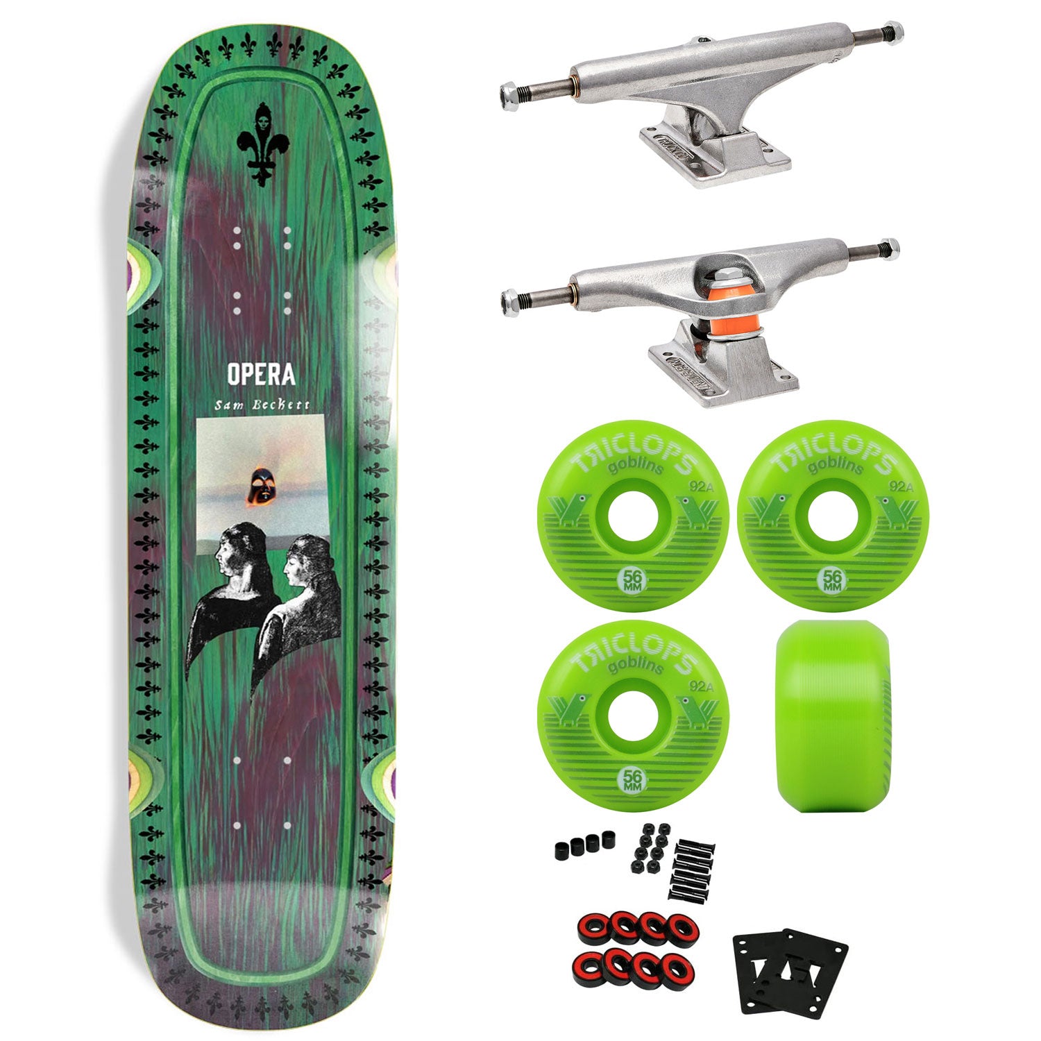 Includes hand selected components to make a premium complete that even the pros would be proud of. Top tier parts from leaders in the industry. Includes a Opera Deck, Independent Trucks, Triclops Wheels, Abec 5 Bearings, Black Diamond Griptape, 1" Hardware and Risers.