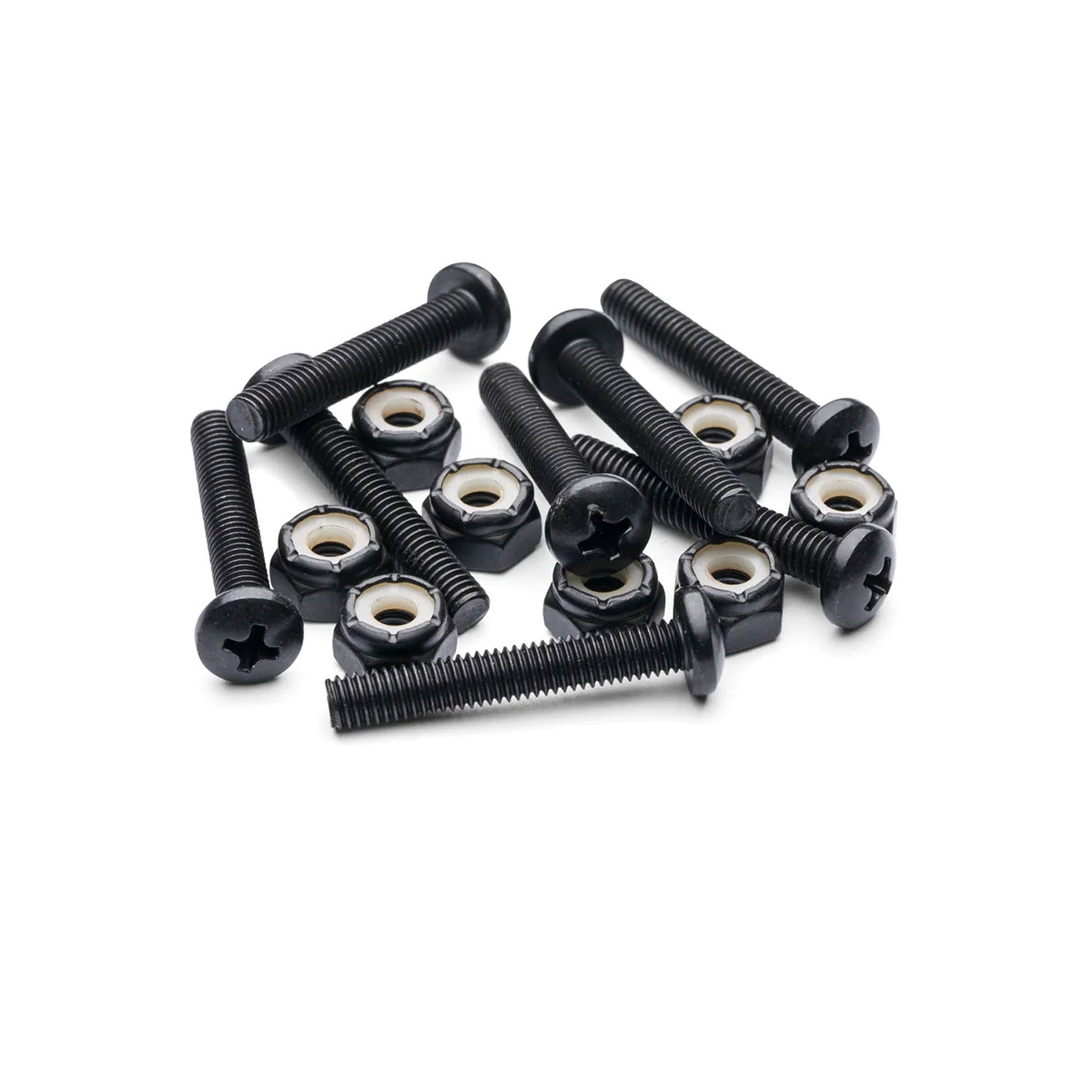 Lock in your trucks with this set of eight 1 1/2" Phillips button head bolts and nuts.Button head to reduce stress on deck or use with drop-through decks 8 Bolts and 8 Nuts Grade 12 Steel