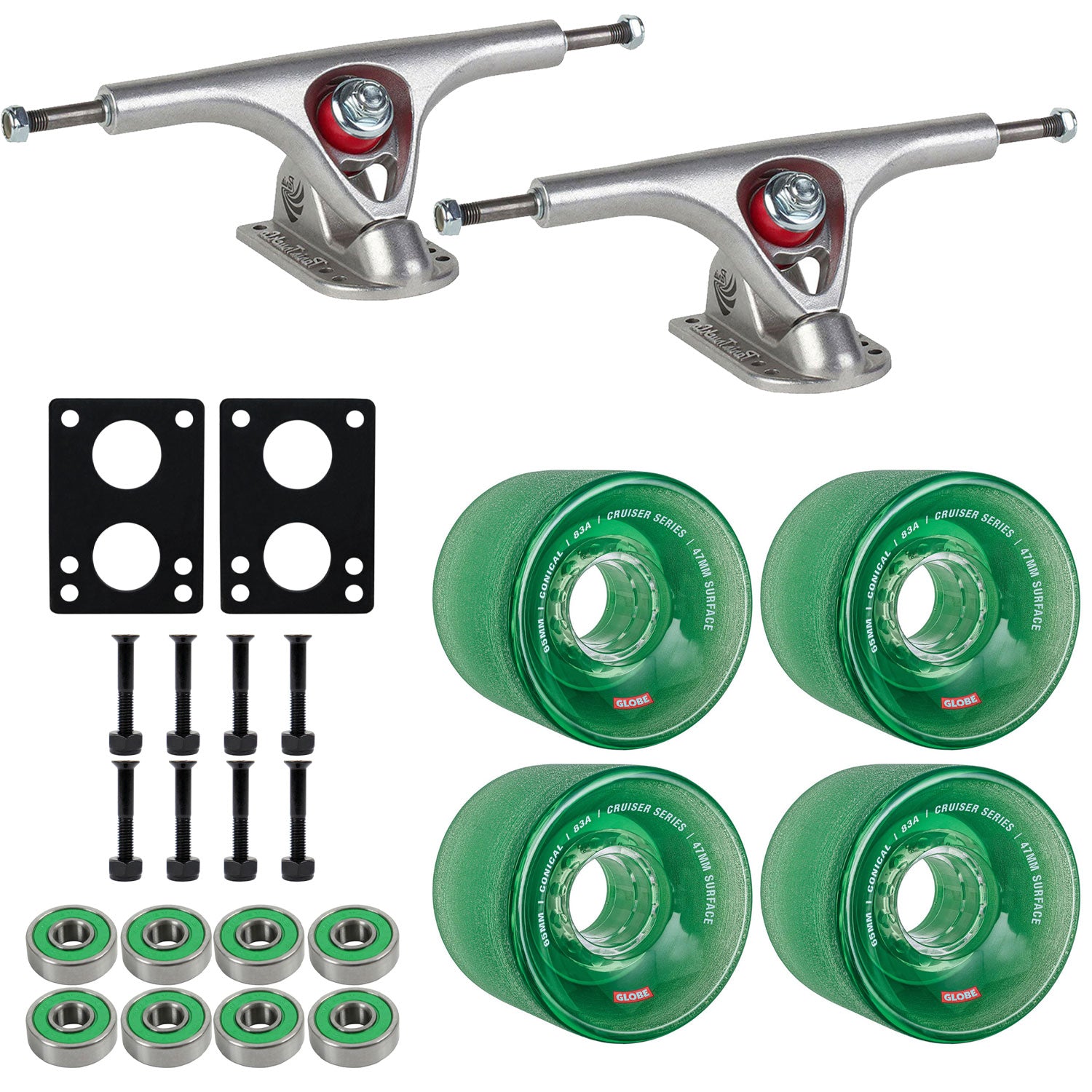 PACKAGE INCLUDES: This longboard package contains everything you need to upgrade your set up, or build a new one. Paris V2 180mm Silver Trucks, Globe 65mm Conical Wheels, Abec 7 Bearings, 1.25" Hardware, and 6mm Risers are included with this "Just add wood" package.