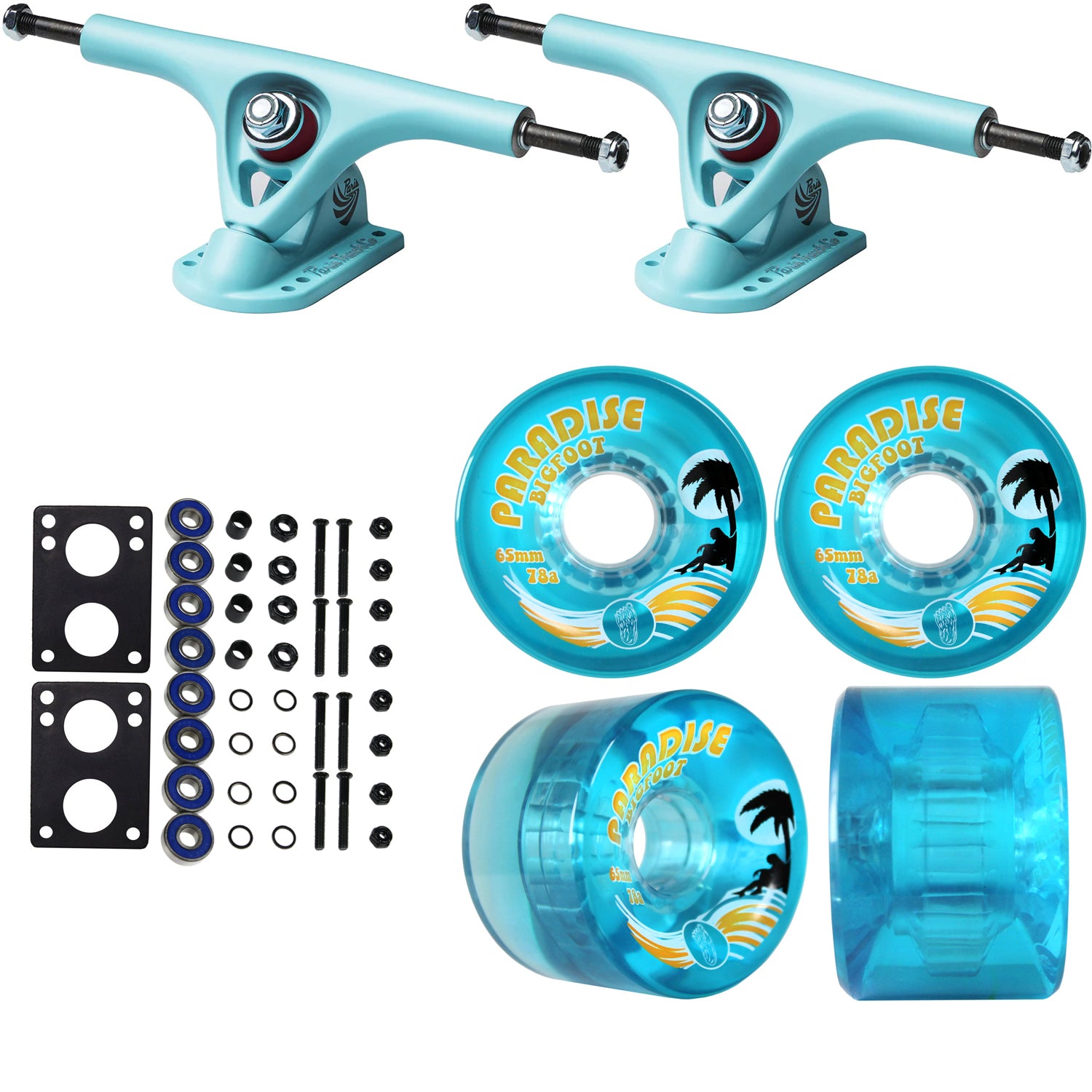 Paris Longboard Trucks, Wheels, Hardware, and Abec 7 Bearings Kit - V2 180 Blue + Bigfoot 65mm 78A Blue
