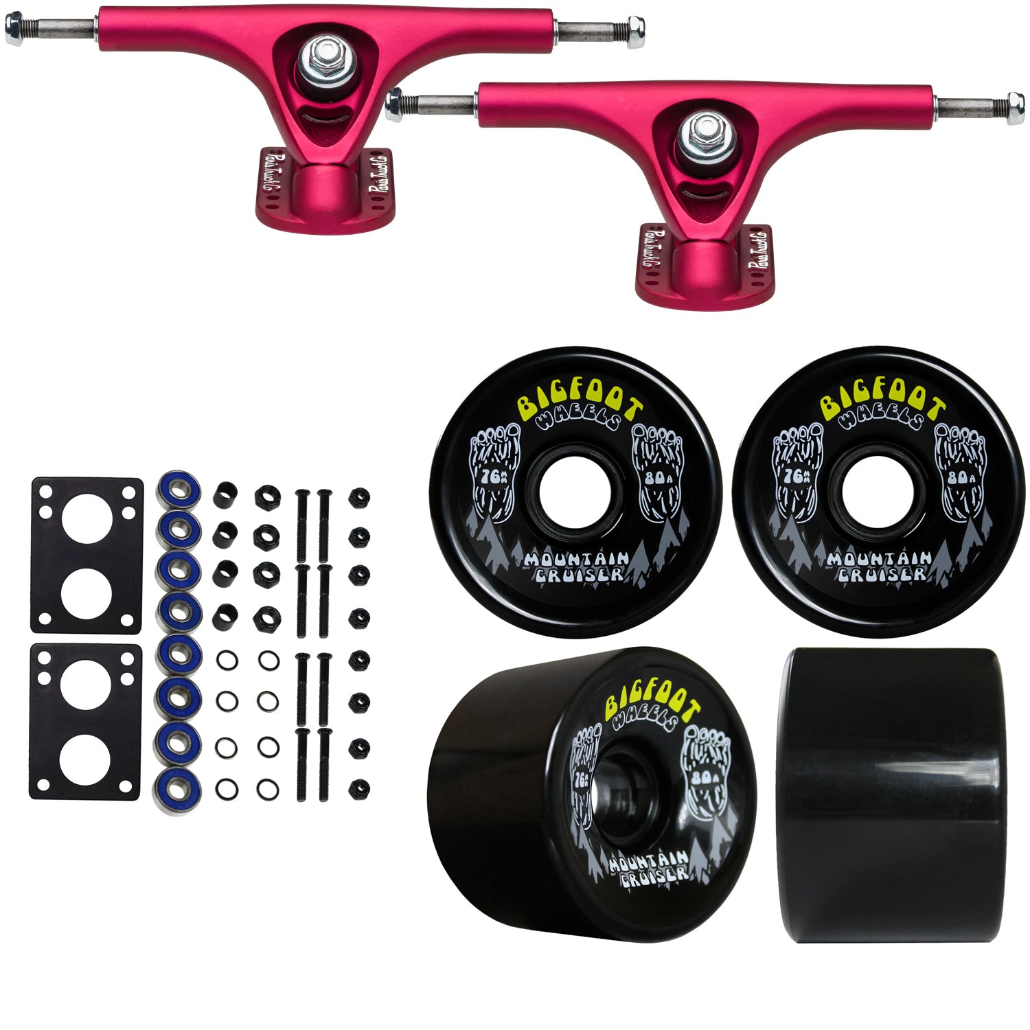 Paris Longboard Trucks, Wheels, Hardware, and Abec 7 Bearings Kit - V2 180 Fuschia + Bigfoot 76mm 80A Black
