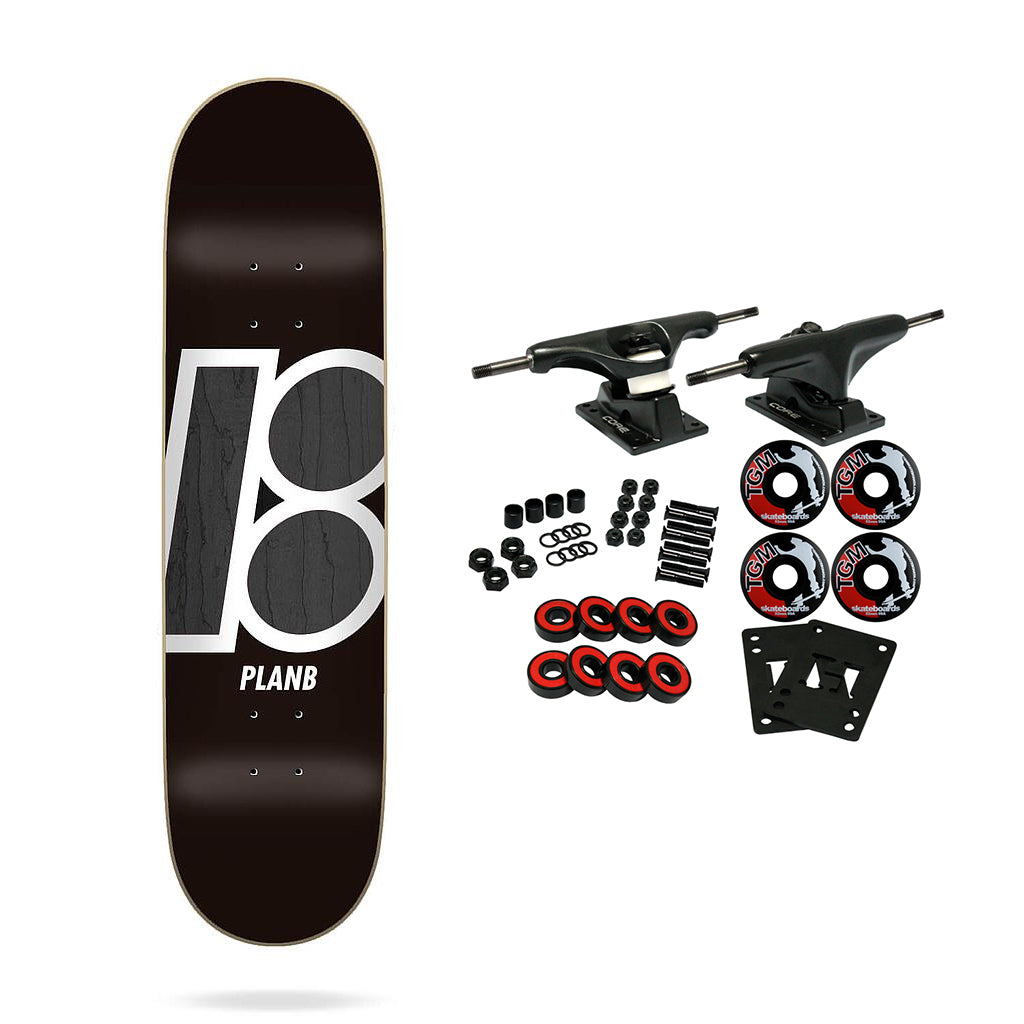 Plan B wood comes exclusively from forest conservation areas in Canada. This board measures 8.5" x 32.125". Comes with Core trucks, 52mm TGM logo wheels, Amp abec 5 bearings, Black Diamond Griptape, risers, and hardware. Core trucks are light weight and feature heavy duty aluminum with grade 8 steel kingpins and axles, as well as USA made bushings and pivot cups. 52mm 99A are the perfect wheels for both street and park skating. Like the name states, Amp bearings are stimulants for your wheels! Light synthetic oil, Delrin Crowns, and Rubber Serviceable Shields are a few of the things that makes these bearings one of the best Abec 5 rated bearings on the market. Arrives un-assembled which allows for customization and a feeling of accomplishment. Skaters love building their boards! Easy to assemble!