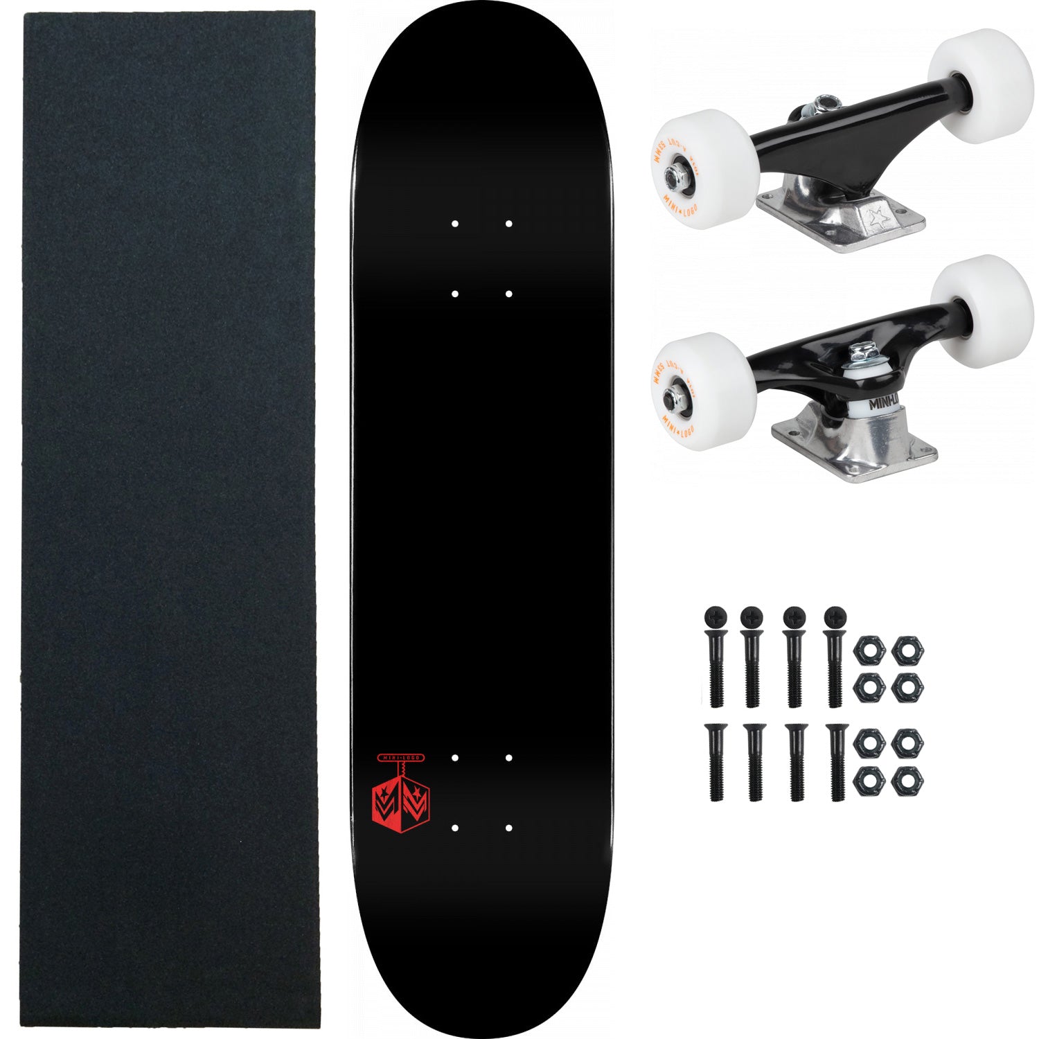 Includes everything you need to build your own Mini Logo complete. Includes a Mini Logo Deck, a 8.0" Mini Logo Truck Assembly complete with 53mm 101A wheels and Mini Logo Bearings, 1" Hardware, and a sheet of Black Diamond Griptape. Handmade with the finest materials, Mini Logo is the industry leader of high-performance price point decks. Mini Logo utilizes 35 years of deck-building experience to deliver the best sizes, shapes, and pop at an affordable price. Seven plies of rock hard maple. Laminated with Skate One's proprietary, low-stress AirLam presses. Proven construction and concave. Measures 7.75" x 31.08".