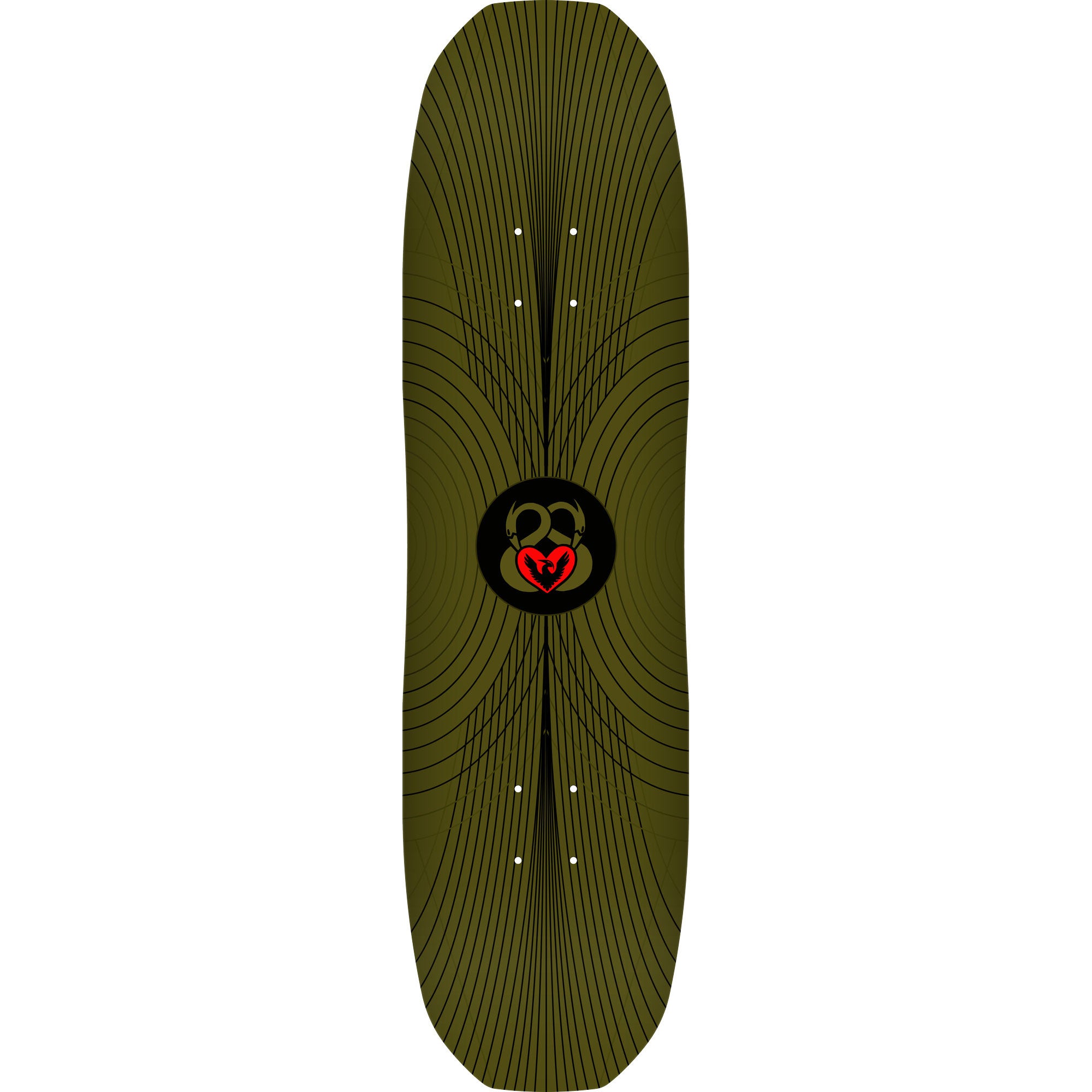 While the Vajra shape was a challenge to develop, this one came easily to Andy. Reminiscent of the original Heron shape but smaller and symmetrical, it measures 8.25" at the waist, just under 8.5" at the widest, and has a 14.25" wheelbase. The square edge and slightly curved nose and tail deliver solid, stable pop, while the K26 concave and inner cuts create a front-foot pocket that makes Tre Flips and Varial Heelflips easier to flick. With its streamlined shape, pop, and responsive feel, the Hydrant shape is solid gold.