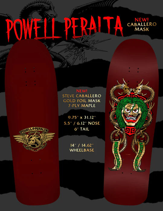 Powell Peralta Skateboard Deck Caballero Mask Burgundy/Gold Foil Old School Reissue