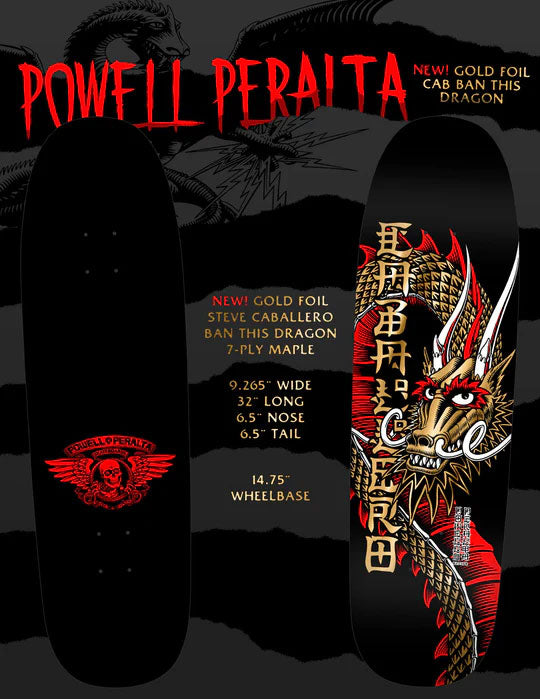 Powell Peralta Skateboard Steve Caballero Ban This Gold Foil / Independent / Rat Bones Black
