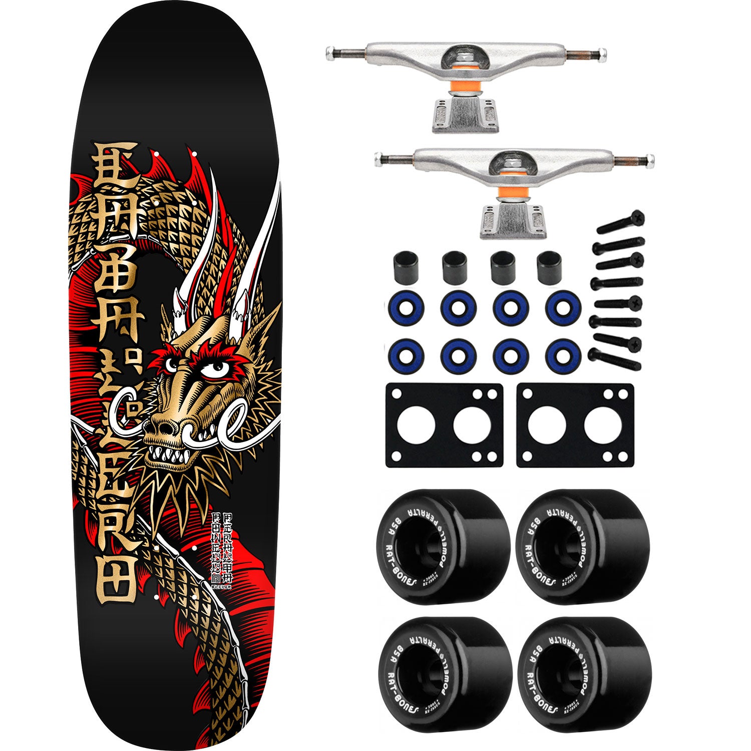 This kit comes with everything you need to build a pro level old school skateboard! Powell-Peralta re-issue decks are close reproductions of their 1980’s counterparts, featuring the original Pro graphics and shape, top graphic logo and concave. Measures 9.265" x 32" with a 14.75" wheelbase. Includes a Powell Peralta Deck, Independent 169 Stage 11 Trucks, Powell Peralta 60mm Rat Bones Wheels, Amp 5 Bearings, Black Diamond Griptape, Hardware, and Risers.
