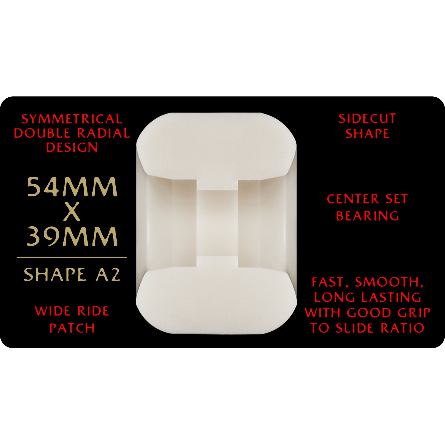 ABOUT THE A2 SHAPE: Symmetrical shape. Sidecut shape. Extra wide ride patch.