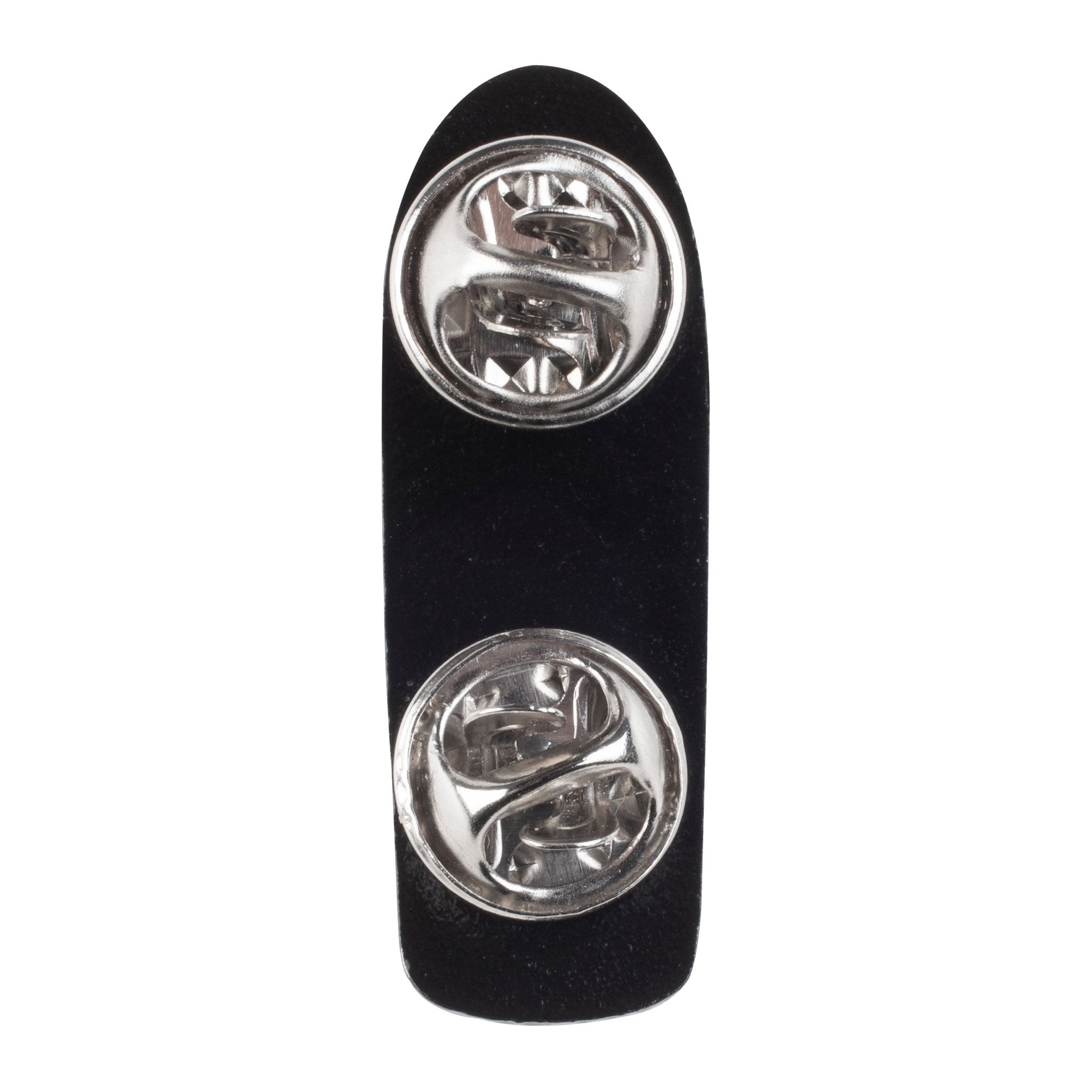 1.5" tall OG Ripper deck lapel pin with 3D kicktail. Dyed black metal enamel lapel pin with two military clutches.
