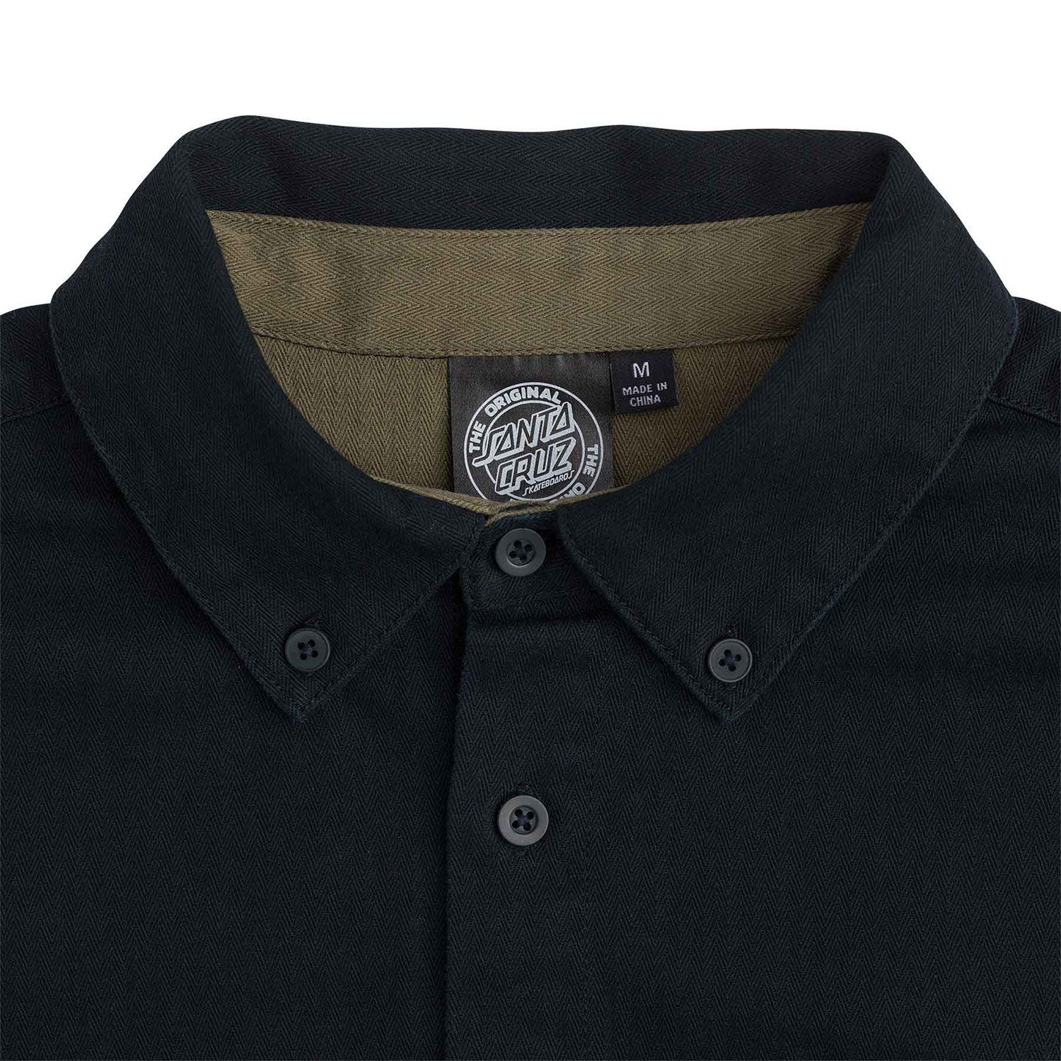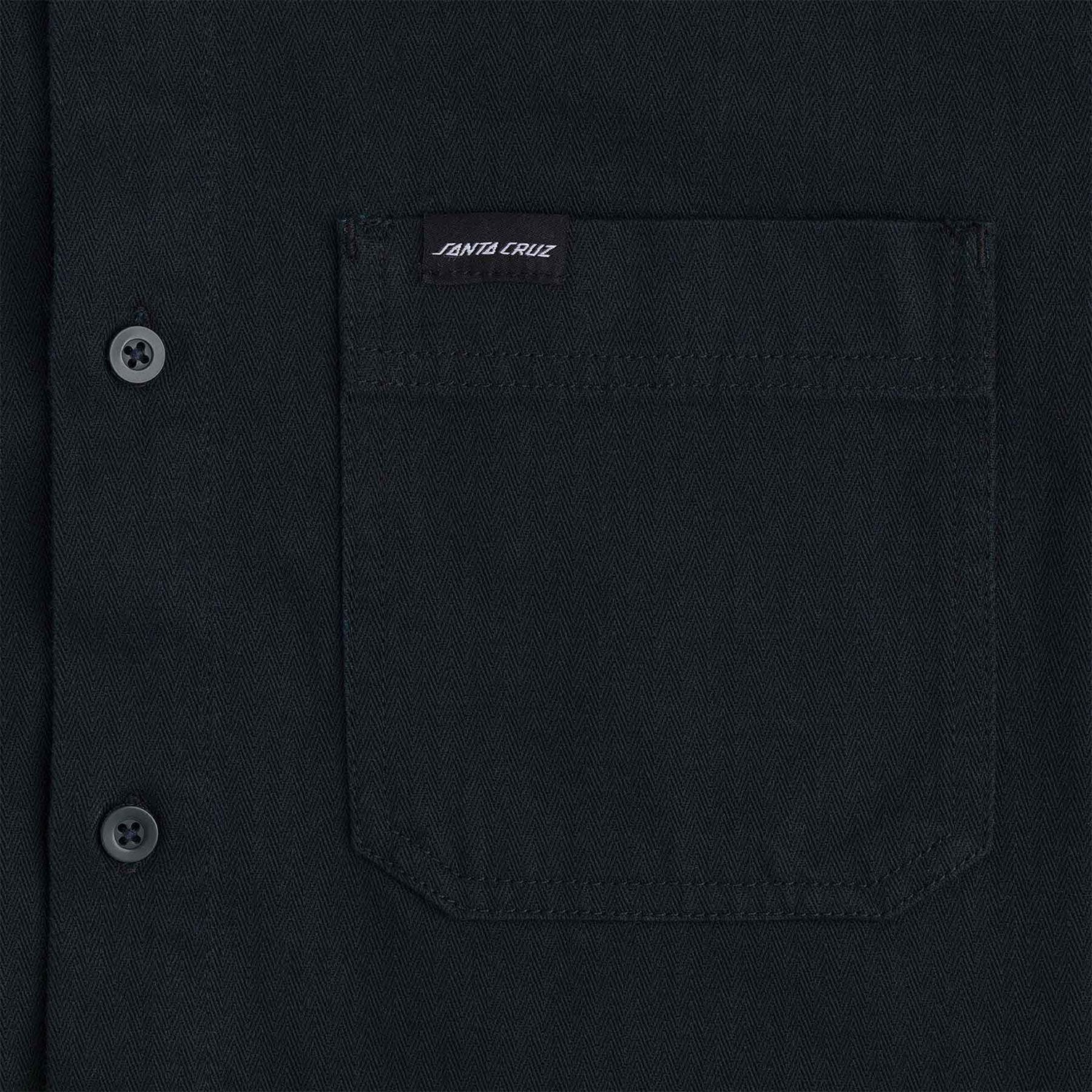 Roll up and stand out in the latest apparel and accessories from Santa Cruz Skateboards. The new Santa Cruz Bowman regular fit herringbone fabric button down top features contrast interior yoke and patch on chest pocket with woven logo loop label. Santa Cruz has been manufacturing iconic skateboards and apparel since 1973. Innovative skateboards and artwork from the beginning 'til the end.