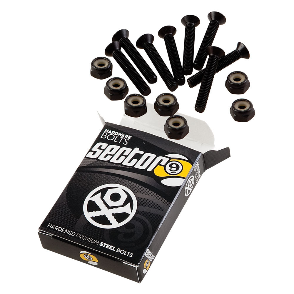 Sector 9 Hardware is made from the highest grade steel. It's unquestioned strength and unmatched durability are just what youo'd expect from a company dedicated to bringing you the world's best skateboards and accessories. Includes 8 1 1/8" Phillips head mounting bolts with lock nuts.