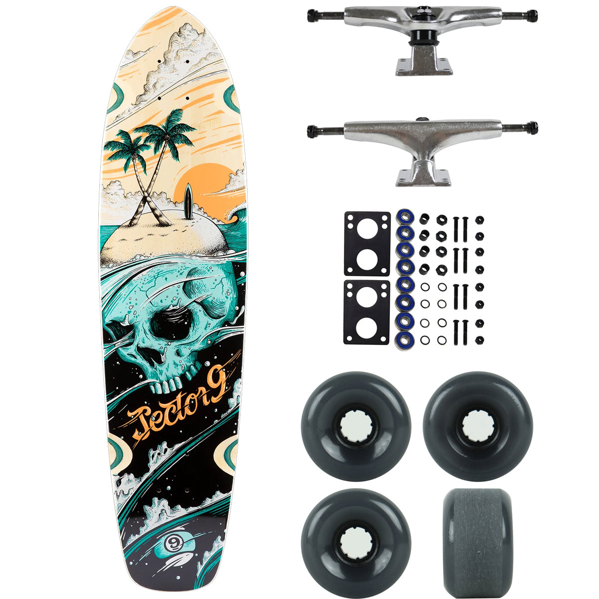 This Kicktail Cruiser style Sector 9 longboard is great for carving and commuting. This board measures 8.7" x 34" with a 20.5" wheelbase. The board comes with clear griptape to show off the bamboo construction. Constructed with Bamboo Maple hybrid mix, featuring art by Nate Reifke. COMPONENTS: Havoc 6.0 Silver Trucks, 60mm 78A USA Made Wheels, Abec 7 Bearings, all neccesary hardware for completion. This package comes with all parts to assemble your longboard. Arrives un-assembled which allows for customization and a feeling of accomplishment. Skaters love building their boards! Easy to assemble!