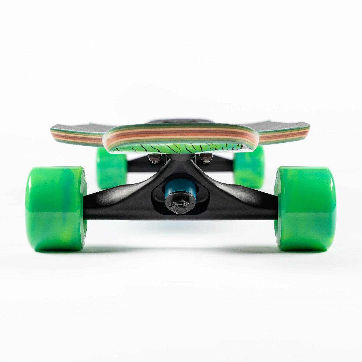 FEATURES: 10.0" Gullwing Reverse Trucks, 70mm 78a Nineballs, ABEC 5 Blaze Bearings with Built-In Spacers, 1.125" Truss Head Steel Bolts, Extra Coarse Grip Tape, 8 Ply Maple, Printed Grip Tape, Sharp Rails for Extra Grip and Control, Drop Rocker Mold, Drop Thru, Symmetrical Shape, Double Kick, Art by El Gran Tocayo.