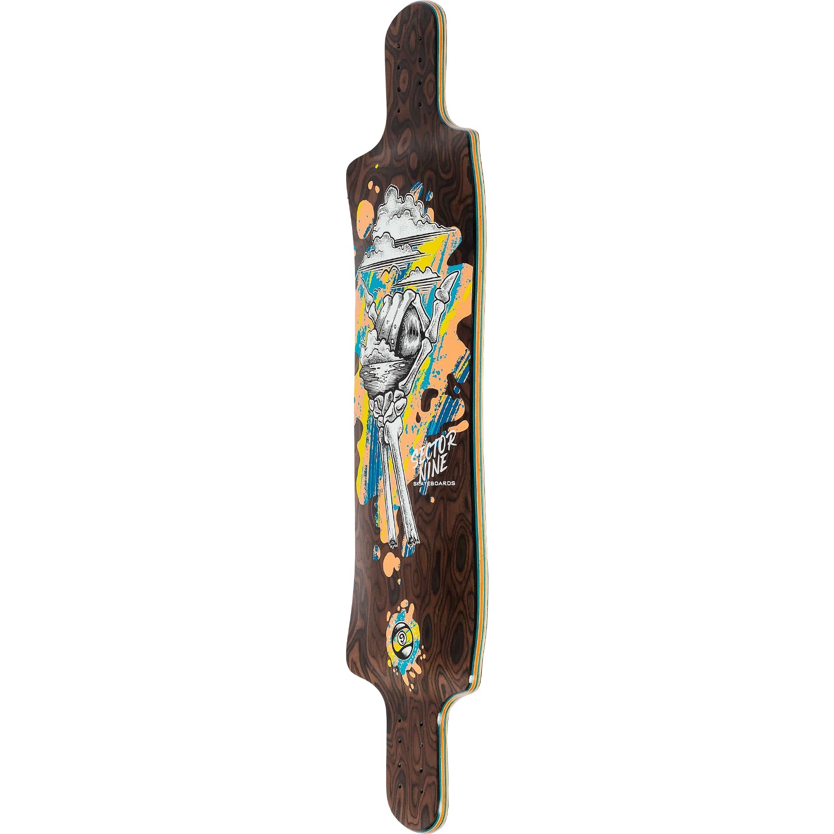 RIDING STYLE: Freeride, Commuter, Downhill. DIMENSIONS: Length: 39.5", Width: 9.75", Wheelbase: 29-31". FEATURES: 9 Ply Maple, Black Burle Bottom Veneer, Drop Down, Sharp Rails for Extra Grip and Control, Art by Nate Reifke. COMPONENTS: 181mm Reverse Kingpin Havoc Trucks, 65mm 83A USA Made Wheels, Abec 7 Bearings, all neccesary hardware for completion. This package comes with all parts to assemble your longboard. Arrives un-assembled which allows for customization and a feeling of accomplishment. Skaters love building their boards! Easy to assemble!