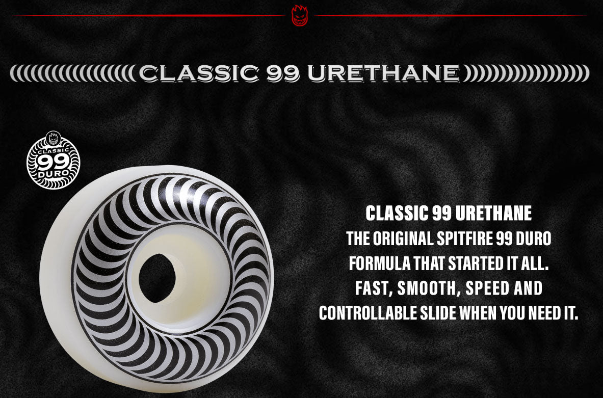 SPITFIRE WHEELS: The classic premium skateboard wheel with timeless graphics. Spitfire wheels are the industry benchmark.