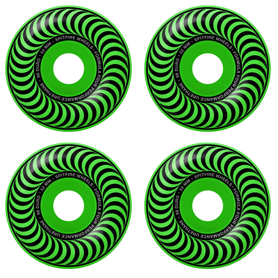 Spitfire Skateboard Wheels 52mm F4 99A Classic Neon Green