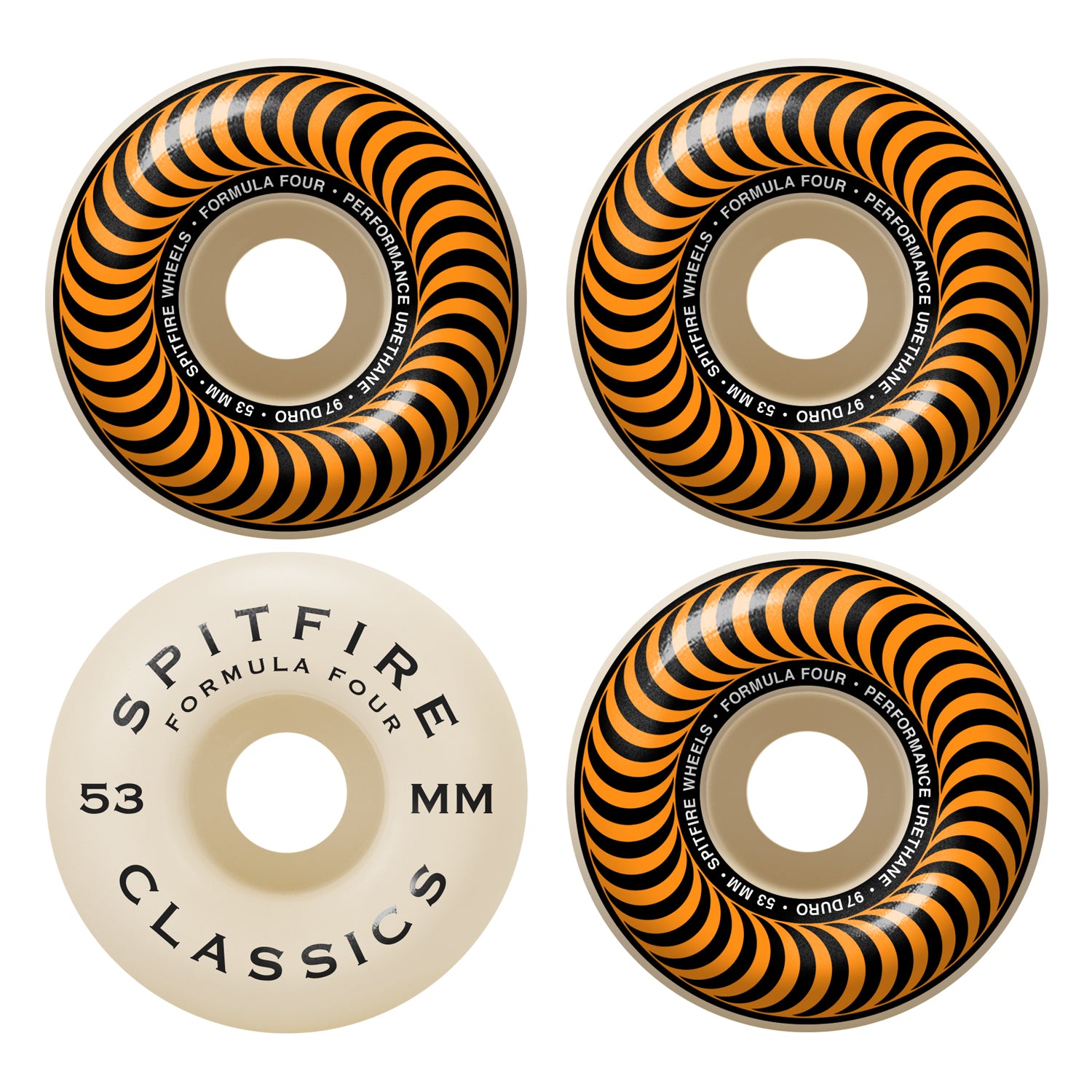 Spitfire Skateboard Wheels 53mm 97A Formula 4 Classics with Bronson Pro G3 Bearings