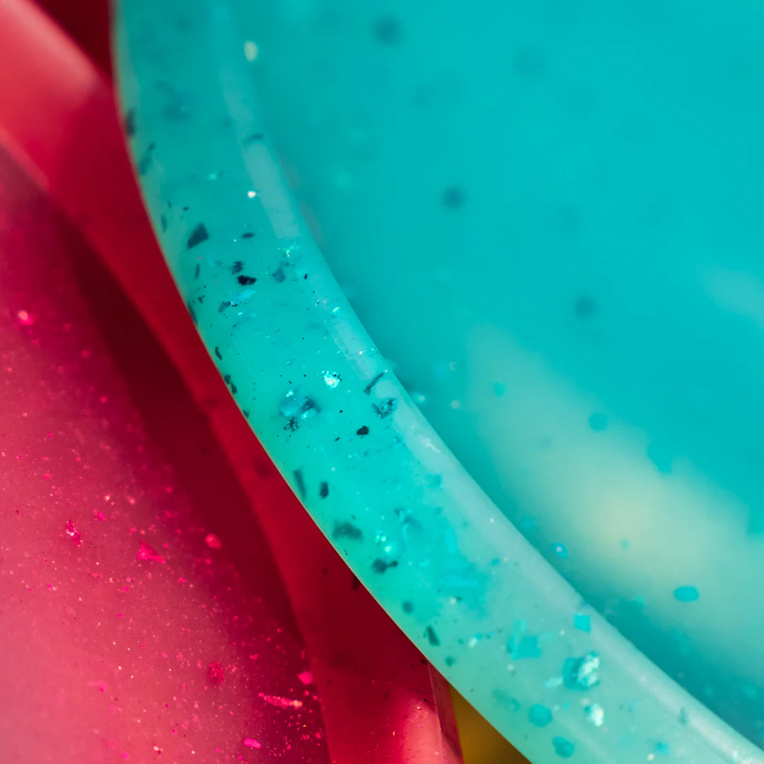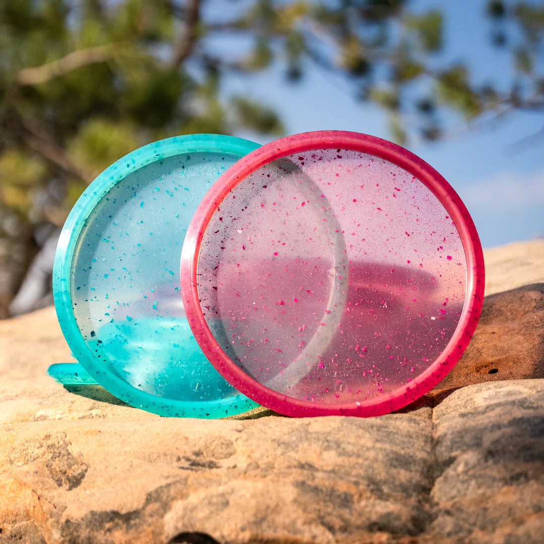 When Trash Panda first started making discs from recycled phone cases (like the Inner Core) they noticed that the designs on the cases created "flakes" that floated around in the rest of the 100% recycled plastic. So they thought "what if we separate these specific sparkly ones to see what would happen??" And the result made our jaws drop.