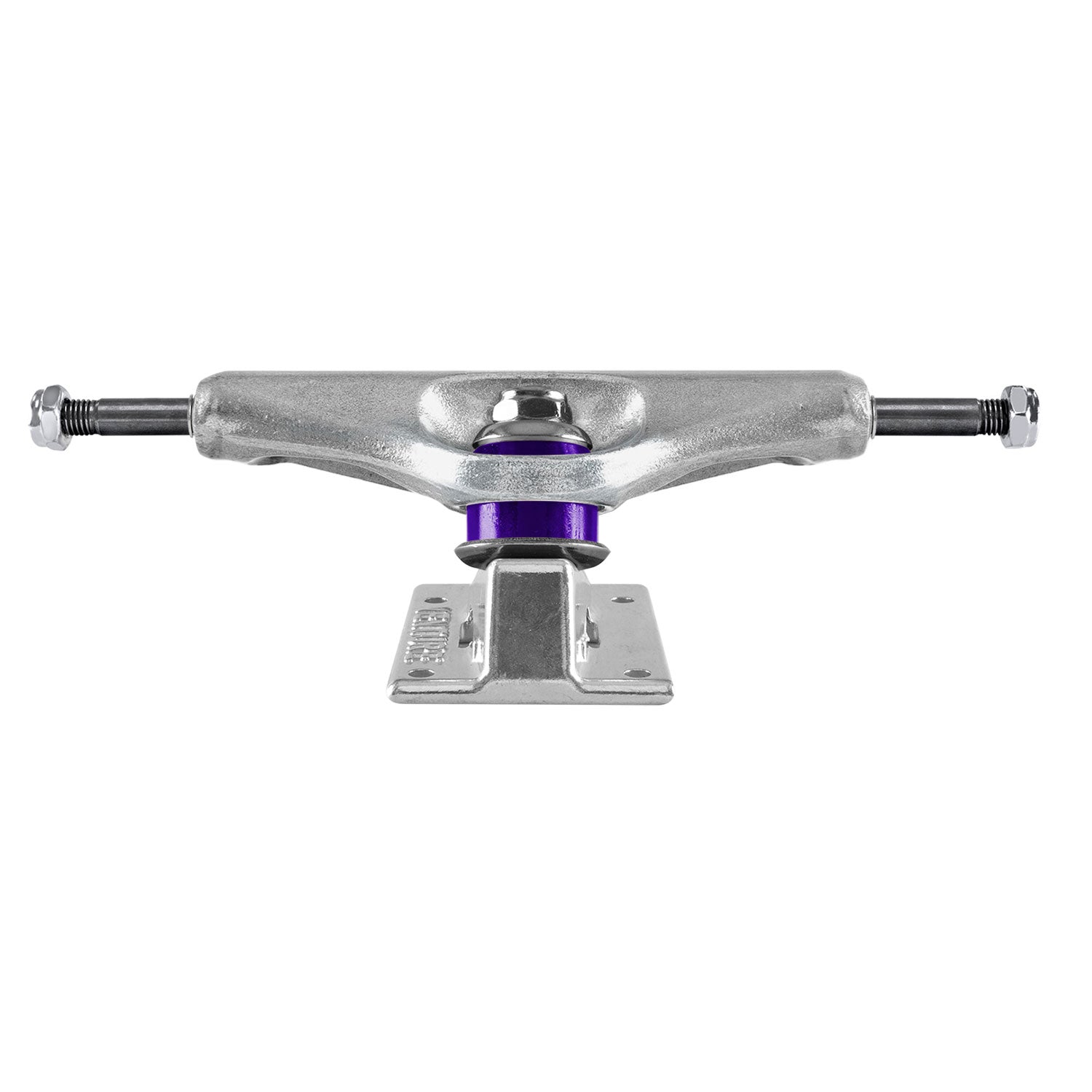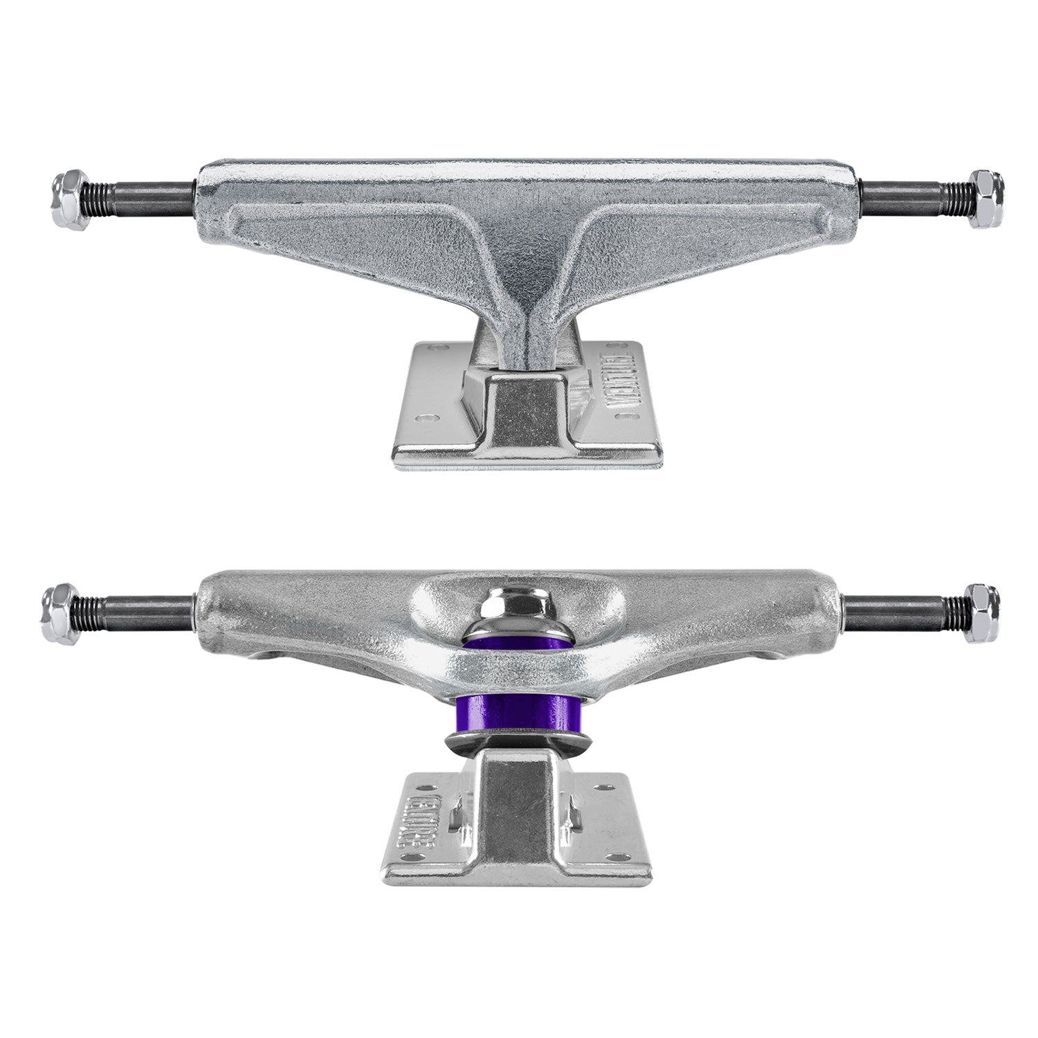 Venture V-Light Polished Low. Lightweight by design, ultra quick response & control, premium grade hollow kingpins, custom forged Aluminum baseplate. Hollow Kingpin. Standard Axle. Purple Bushings. Venture 5.6 = 8.25" Axle. Includes 2 Trucks.