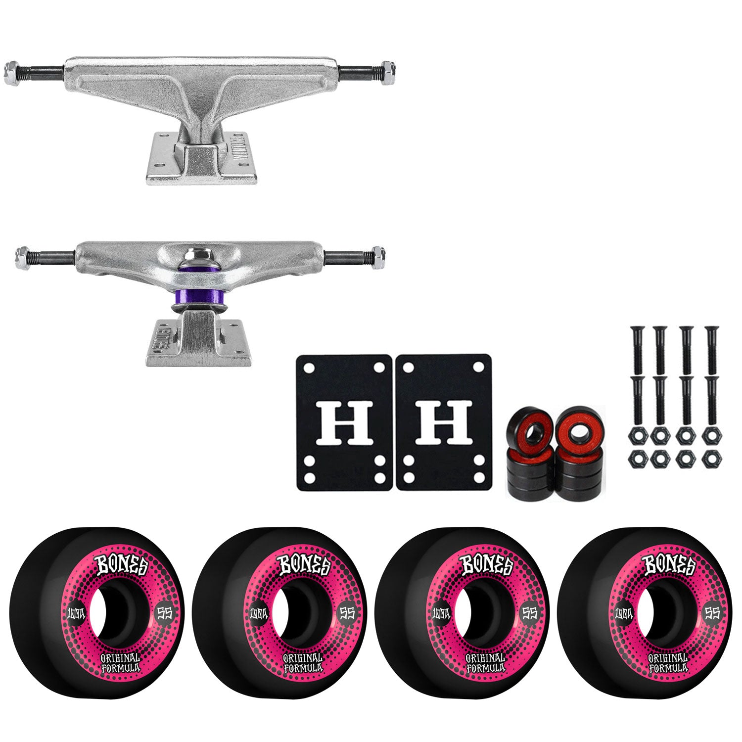 This package contains everything you need to make your deck a complete. Includes a set of Standard Polished Venture Trucks, Bones 100's Wheels, Amp Abec 5 Bearings, 1" Hardware, and 1/8" Riser pads. Just add a deck and griptape and you are ready to ride!