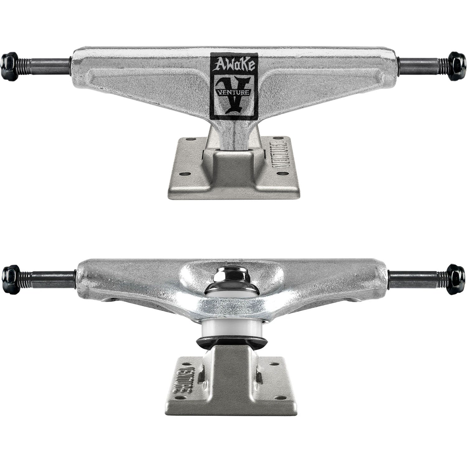 Venture always brings the heat with pro edition trucks. Their classic style trucks provide style and function for days. The Venture Nick Matthews Awake LTD trucks feature polished hangers, a raw cast baseplate, and white 90A white bushings. Venture 5.6 = 8.25" Axle. Includes 2 Trucks.